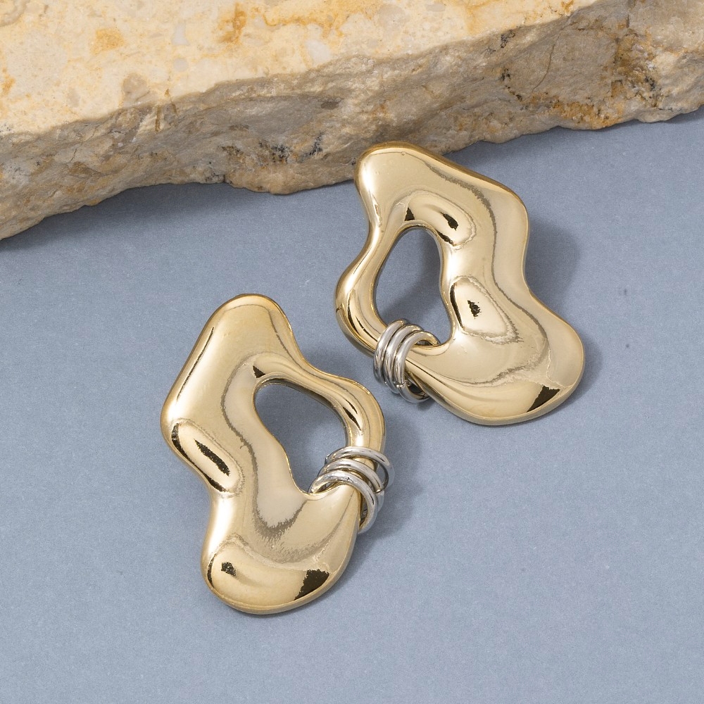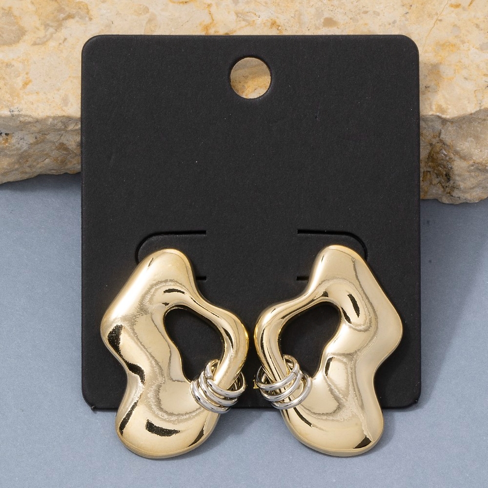 Bold and daring, this pair of stud earrings comes with a special two tone abstract blob design. This versatile pair of stud earrings adds a touch of elegance to any outfit. This item is sold in packs of 12.