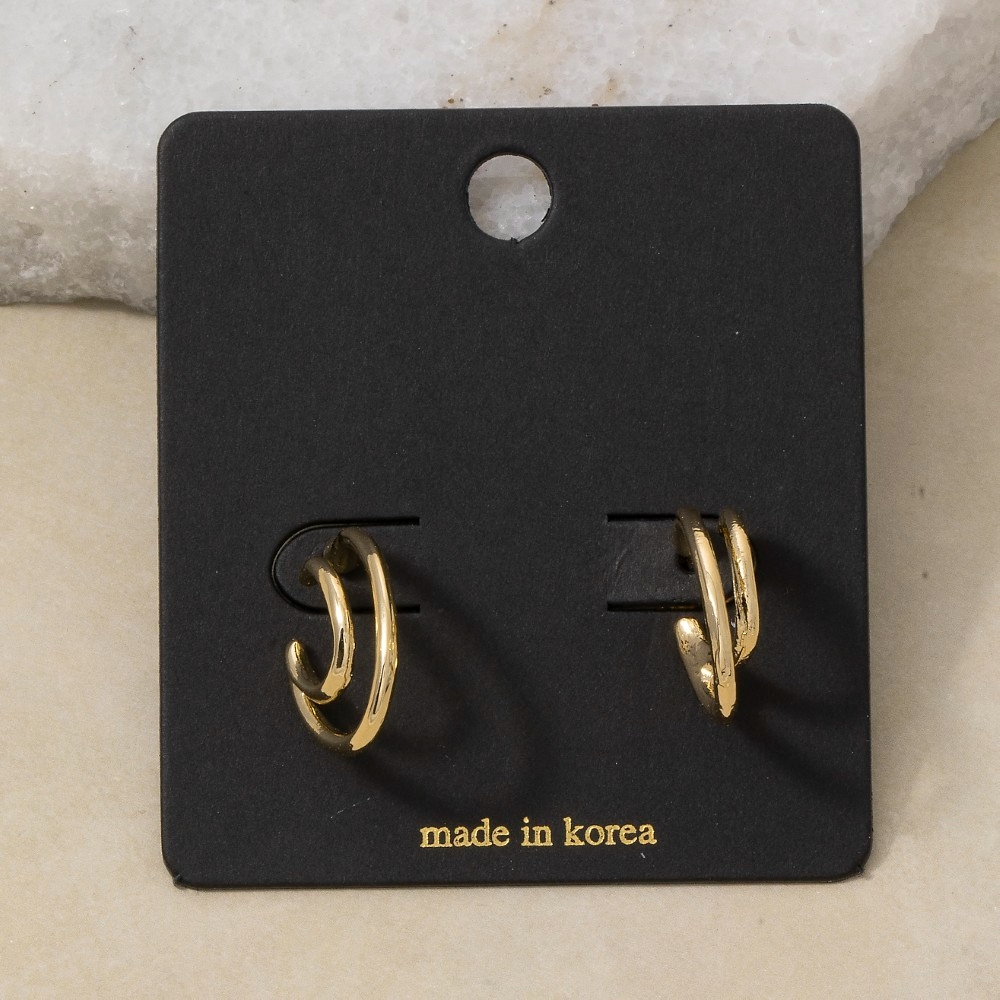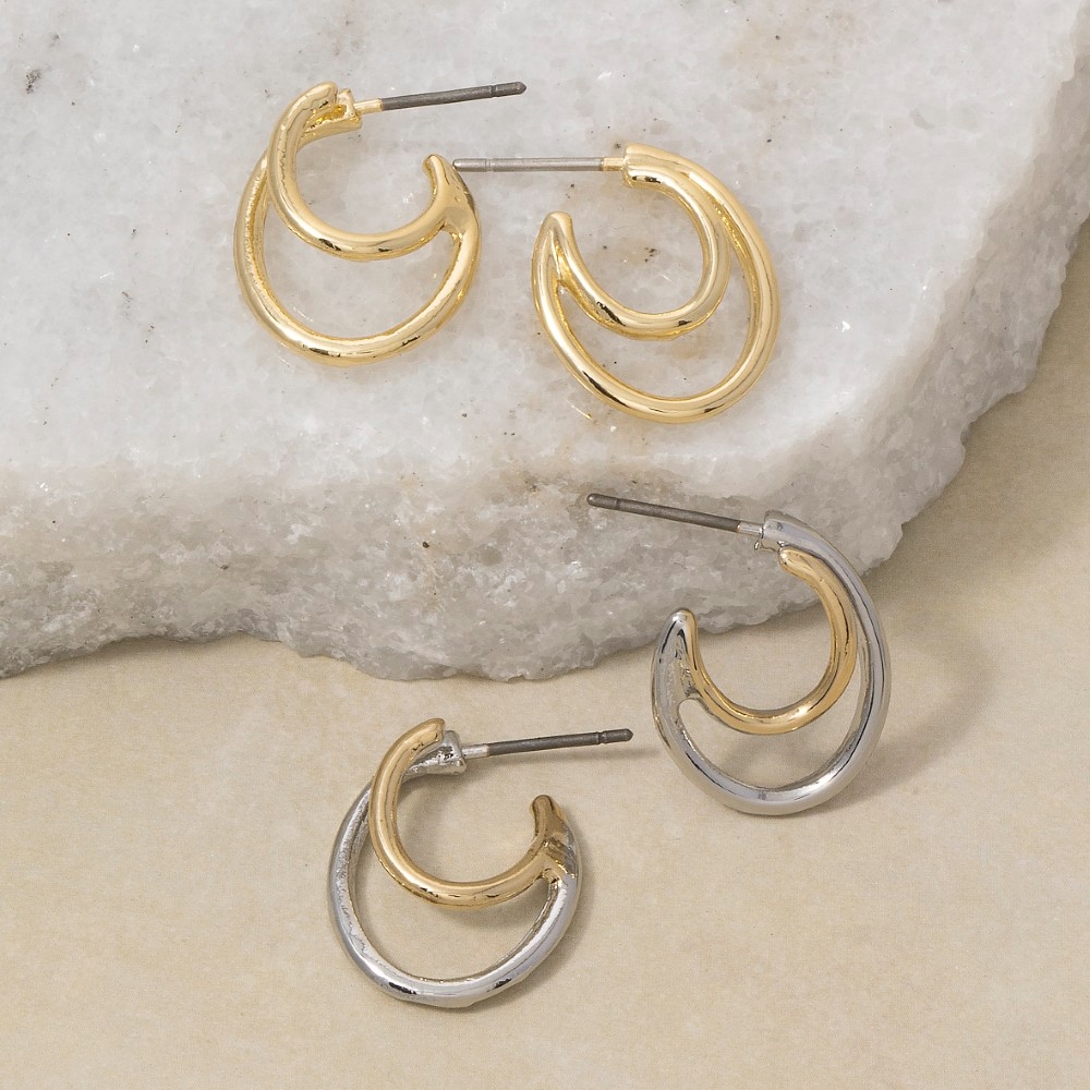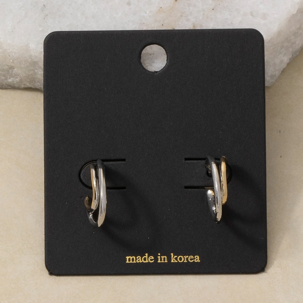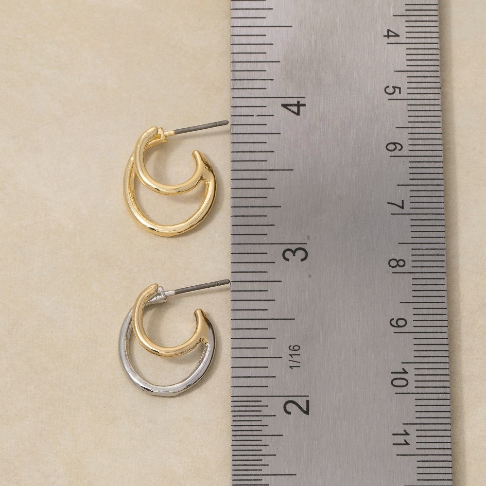 This season's must-have pair of earrings, this pair of earrings brings a one-of-a-kind two-tone double curved bar huggie design. A perfect addition to your wardrobe that effortlessly enhances your style. Available in G, TT. This item is sold in packs of 1.