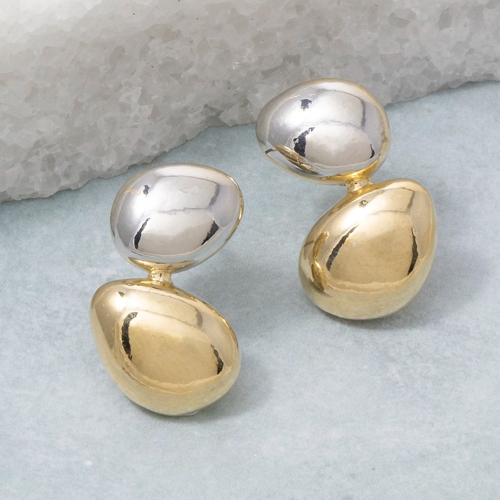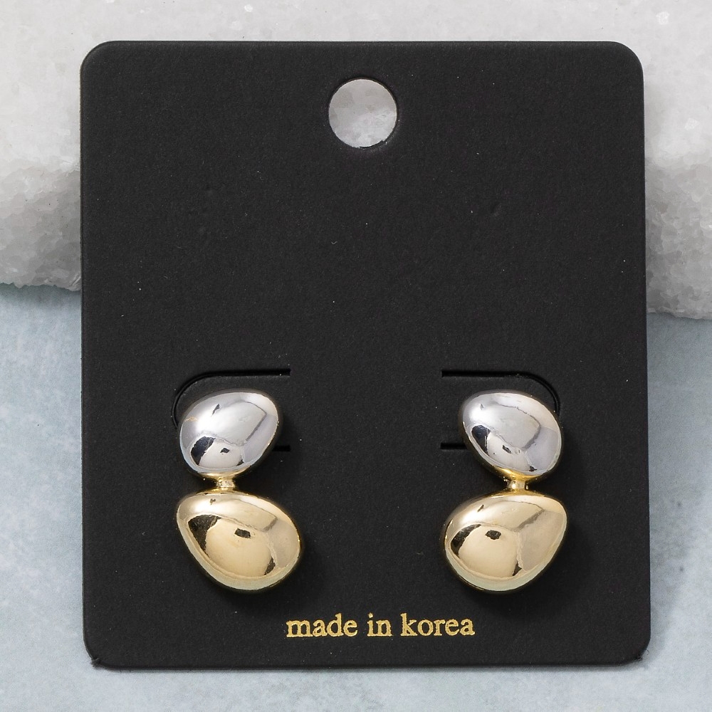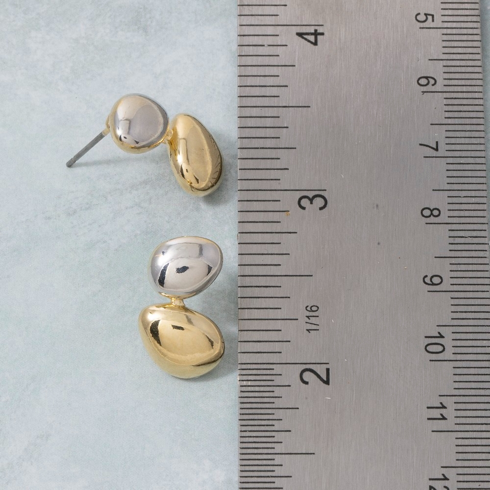 The perfect way to showcase your unique style, this pair of drop earrings emanates an elegant two-tone double pebble design. Unleash the charm of this versatile pair of drop earrings, effortlessly turning any outfit into a fashion statement. This item is sold in packs of 1.