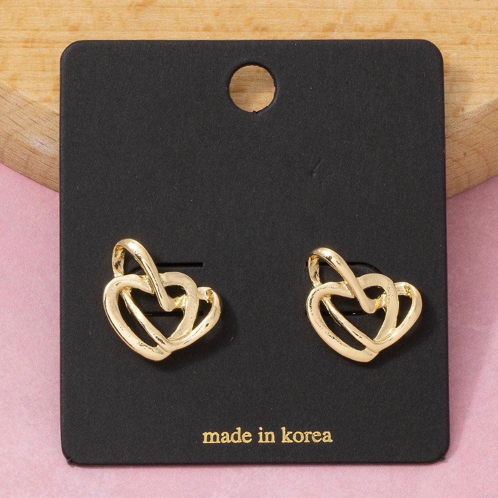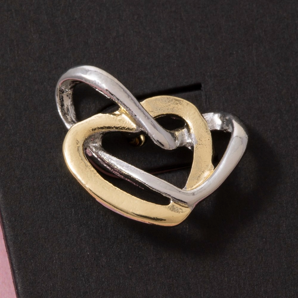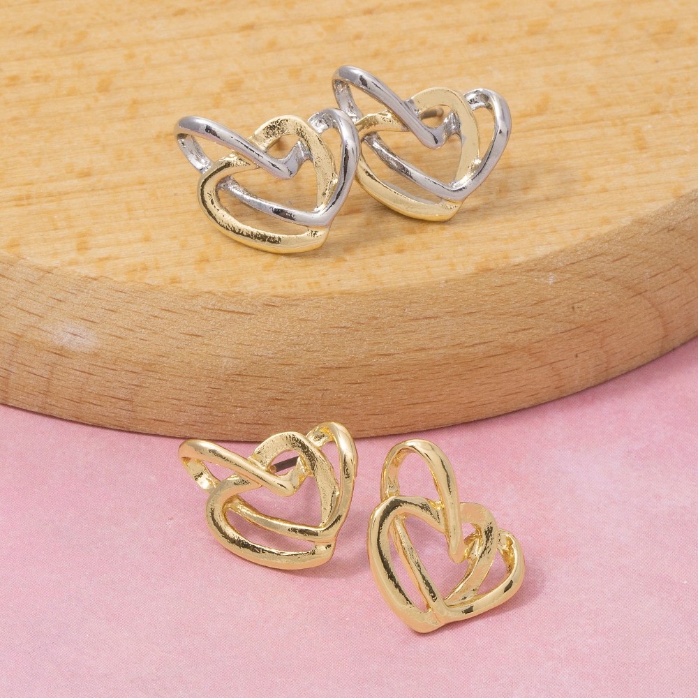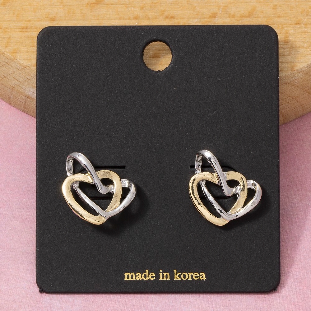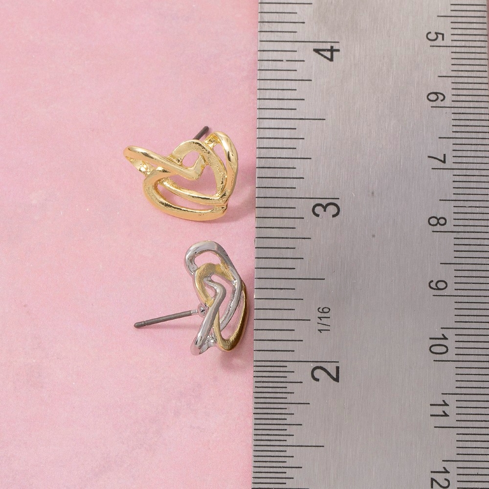 Sleek, modern, and always stylish, this pair of stud earrings incorporates a flawless two-tone interlocked double heart design. This item is perfect for adding some color and vibrancy to any outfit. Available in G, TT. This item is sold in packs of 1.