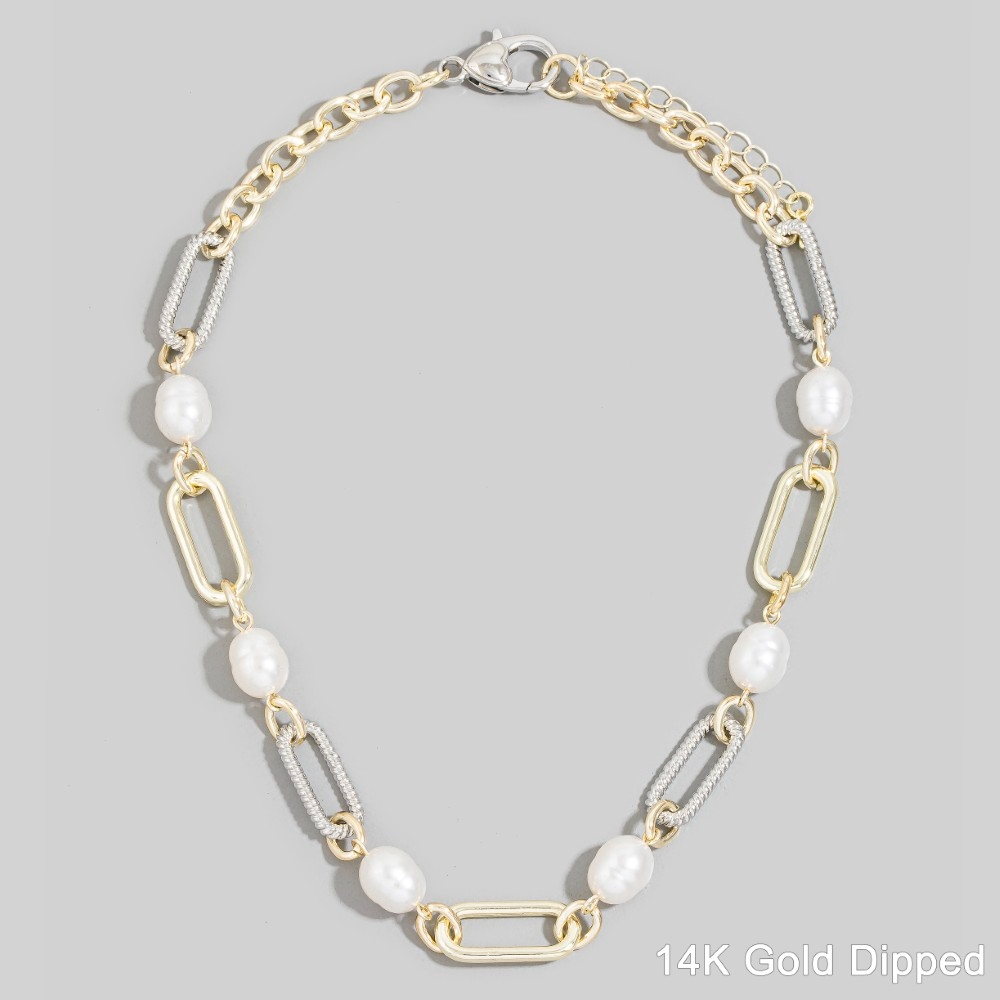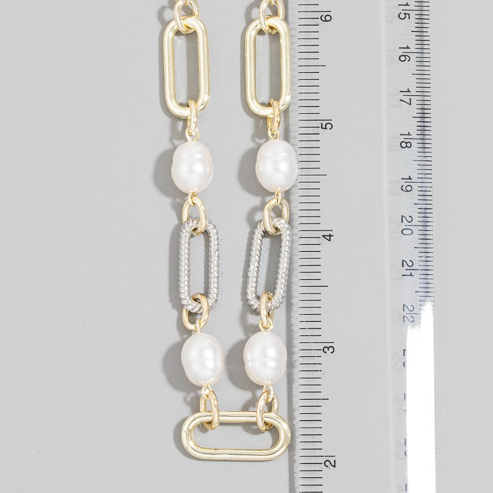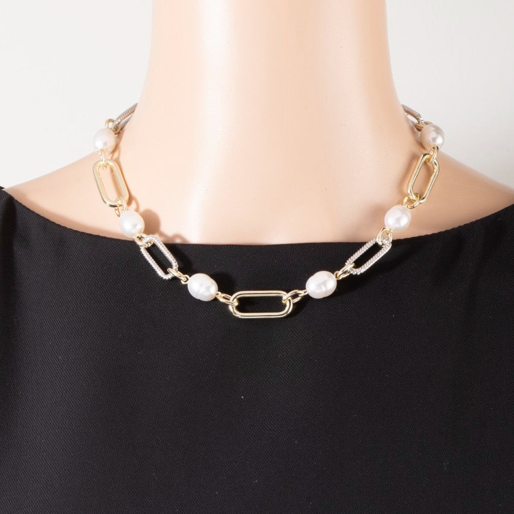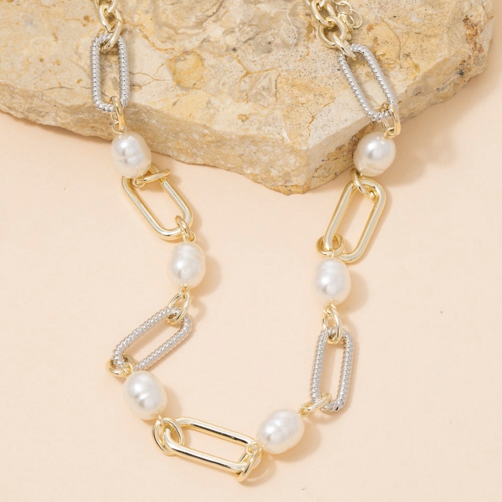 A must-have for any fashion-forward individual, this chain necklace displays a unique two-tone pearl & paperclip design. This item is ideal for those who want to add some personality to their outfits without being too bold. This item is sold in packs of 1.