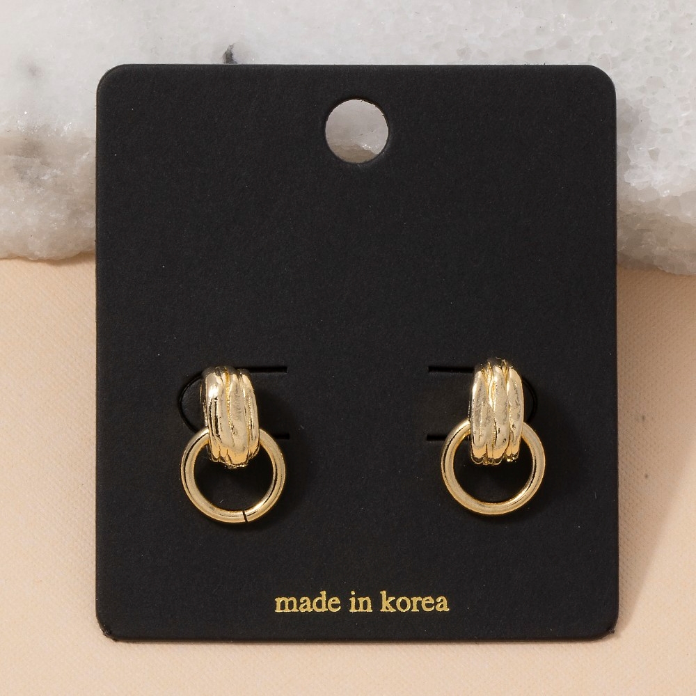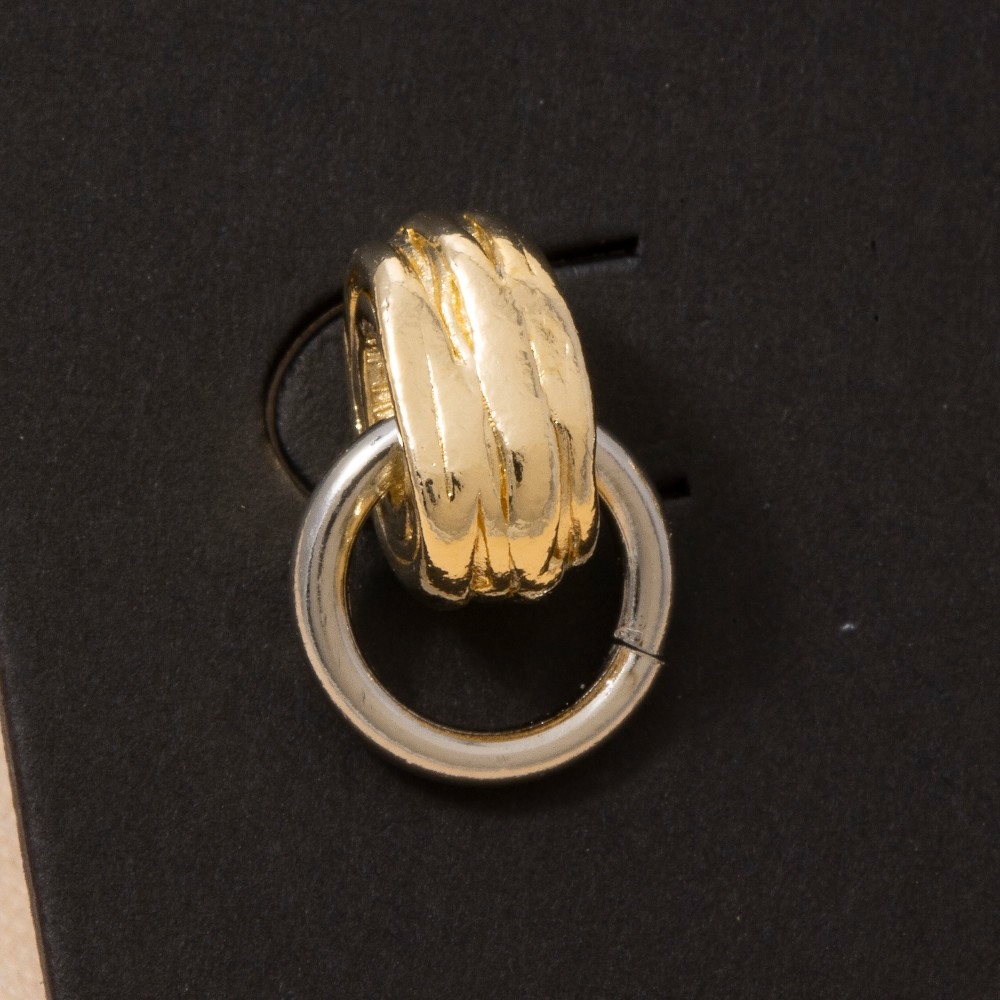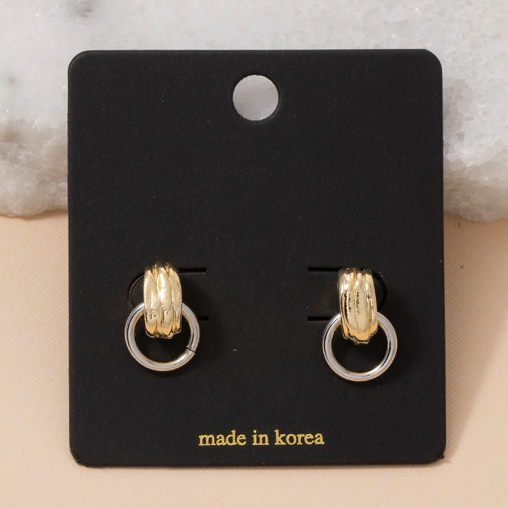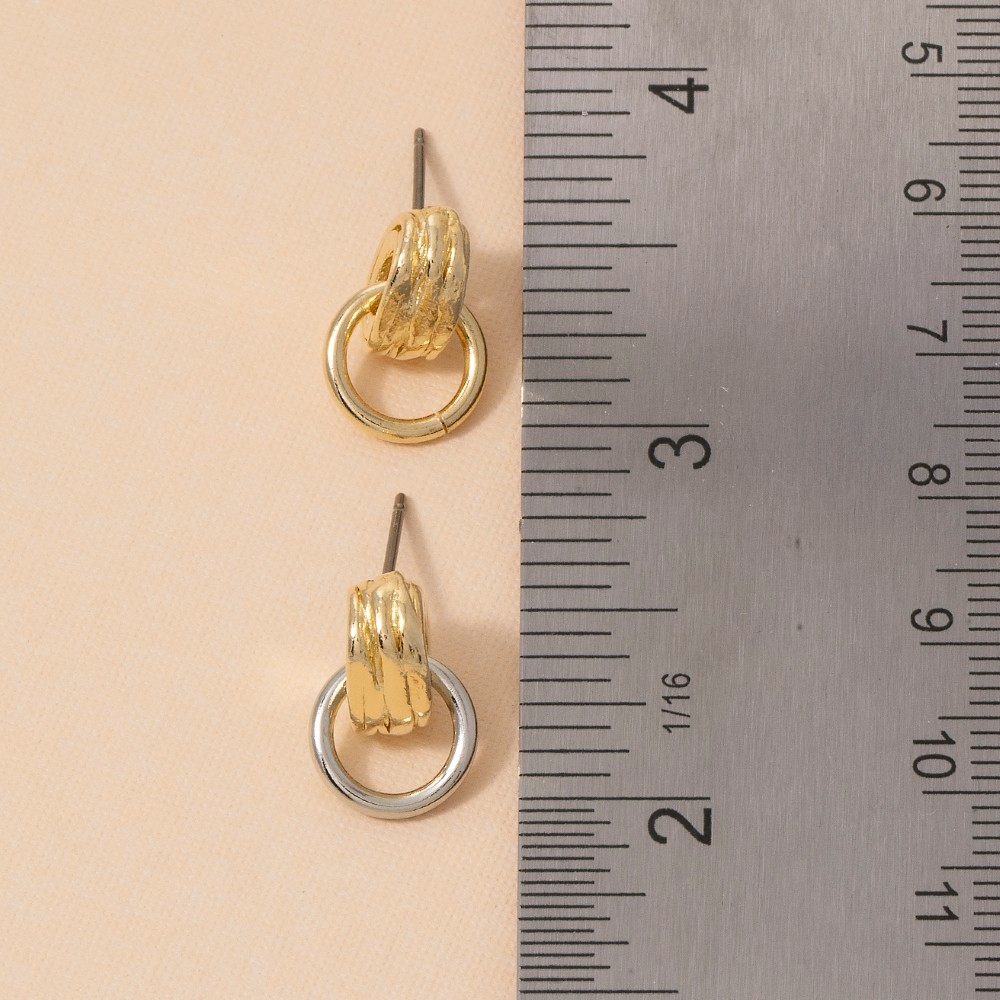 Bold, daring, and endlessly stylish, this pair of drop earrings incorporates a flawless two-tone ribbed tube stud with open ring design. This item is a great way to add some texture and dimension to any outfit. Available in G, TT. This item is sold in packs of 1.
