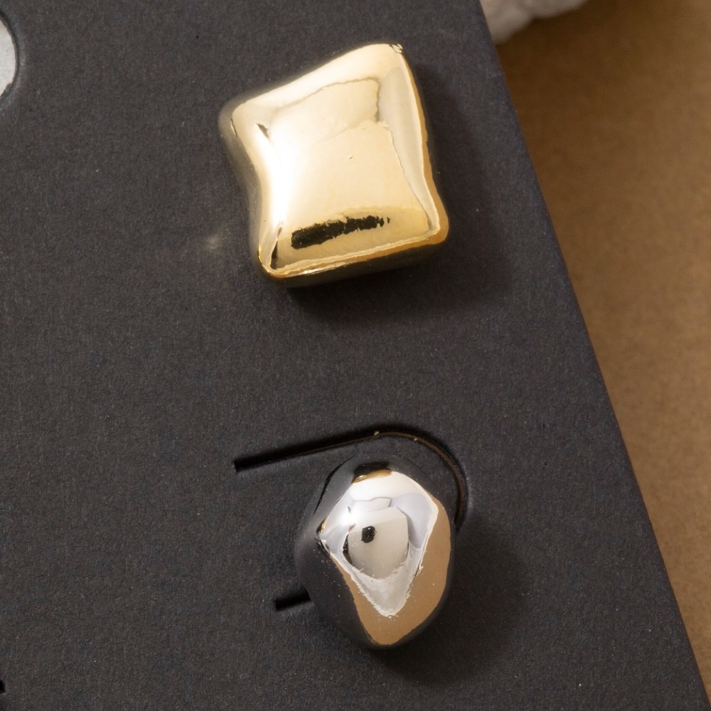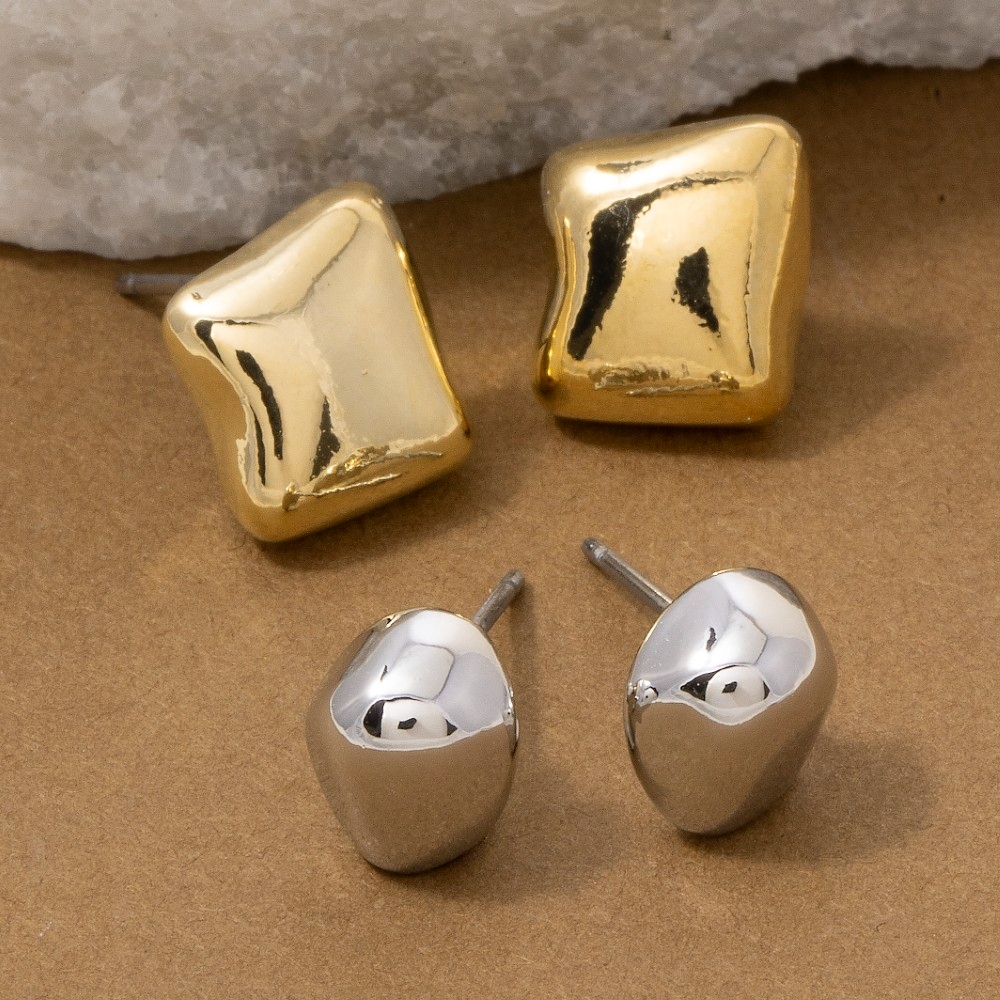 An instant wardrobe staple, this pair of earrings incorporates a remarkable two tone square & nugget 2 pair stud earring set design. Discover the magic of accessorizing with this versatile pair of earrings, effortlessly upgrading the style quotient of any outfit. This item is sold in packs of 12.