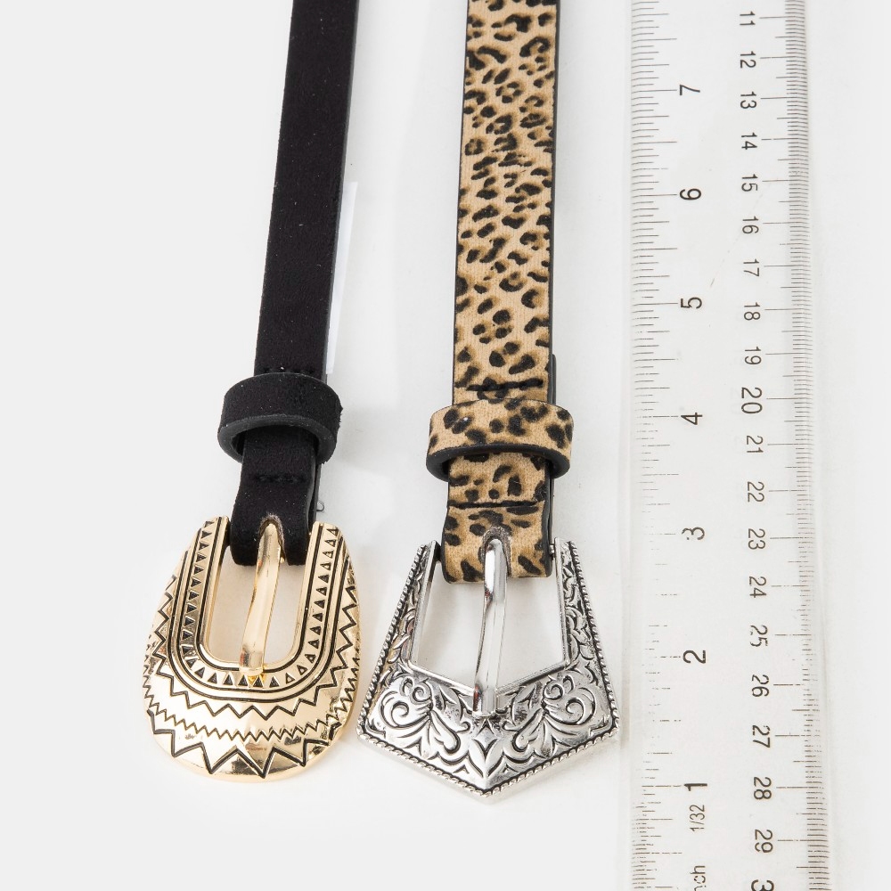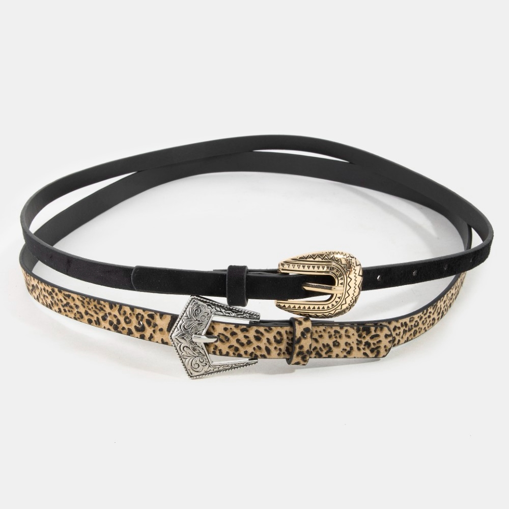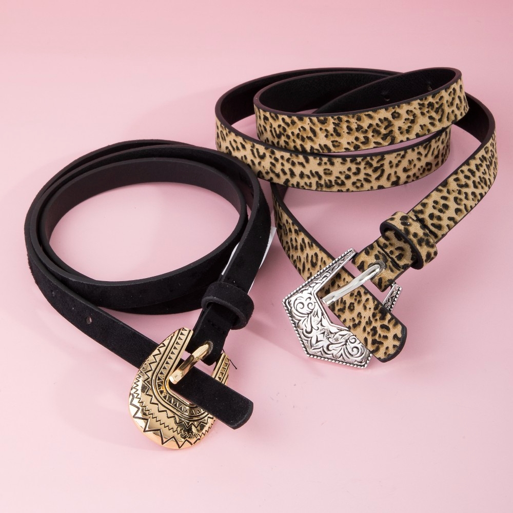 • Sleek and modern, this belt set comes with a special vegan leather black and leopard embroidered buckle design. Infuse a hint of luxury into your daily attire with this versatile belt set, a must-have for those who appreciate timeless elegance. Available in MULTI. This item is sold in packs of 1.