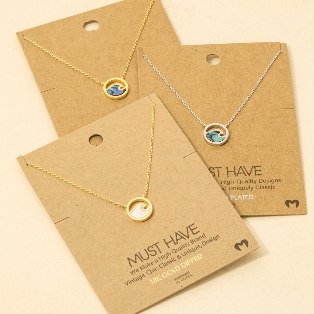 This season's must-have trending necklace, this trending necklace reveals an intricate wave coin pendant necklace design. Add a dash of sophistication to your look with this versatile trending necklace, a must-have for fashion enthusiasts. Available in GA, GW, SA. This item is sold in packs of 1.