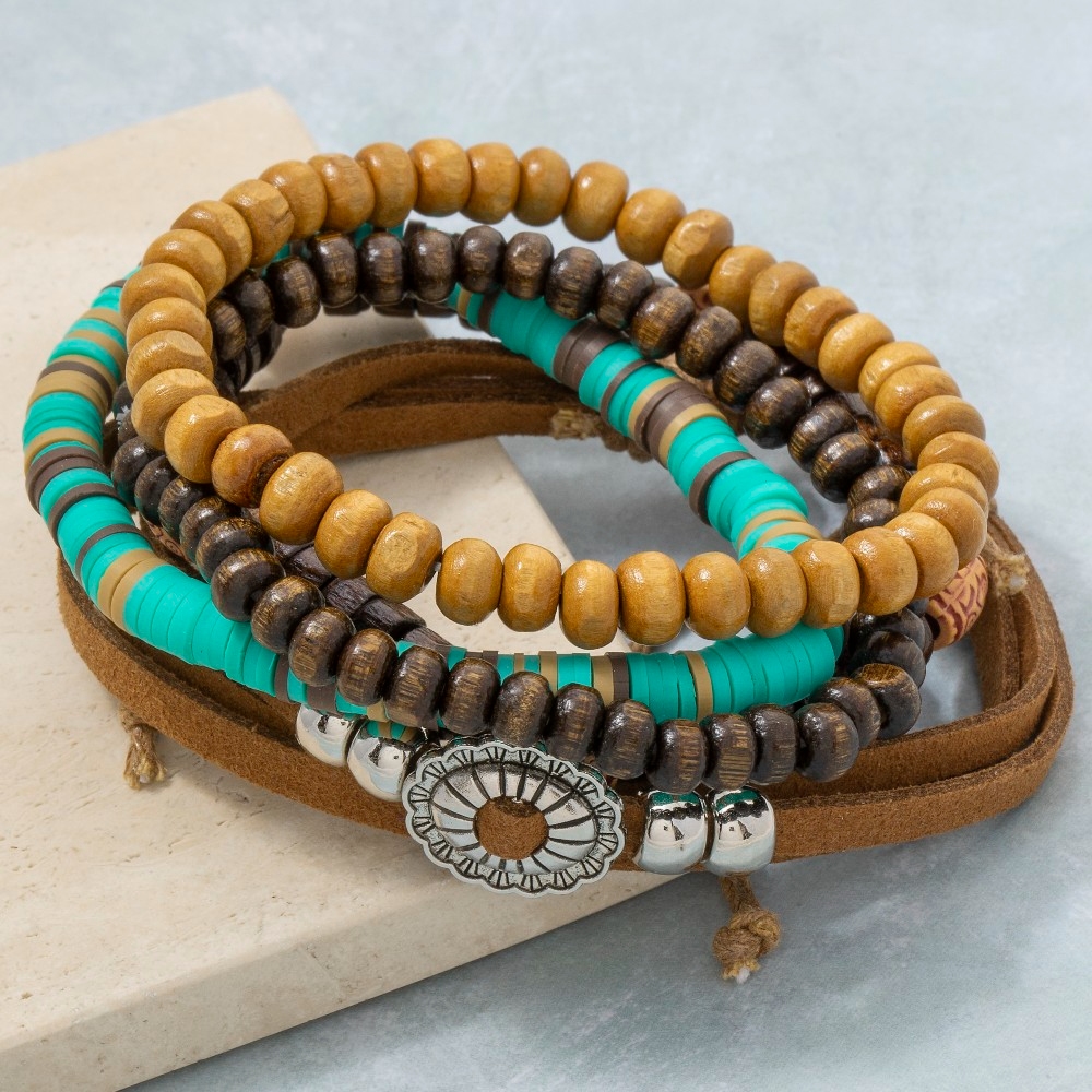 A versatile piece that can be dressed up or down, this bracelet features an exceptional western assorted wooden beads set design. Master the art of accessorizing with this versatile bracelet, a key element for achieving a chic and polished look. This item is sold in packs of 1.