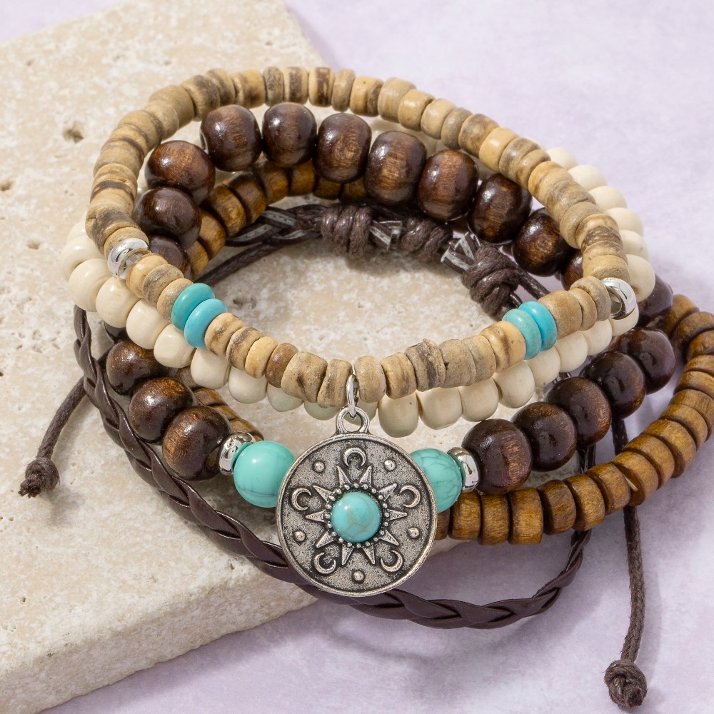 - The perfect way to add some sparkle to your outfit, this stackable bracelet exudes a refined western coin charm beaded set design. Transform your outfit into a fashion masterpiece with this versatile stackable bracelet, an essential for the style-conscious individual. This item is sold in packs of 1.