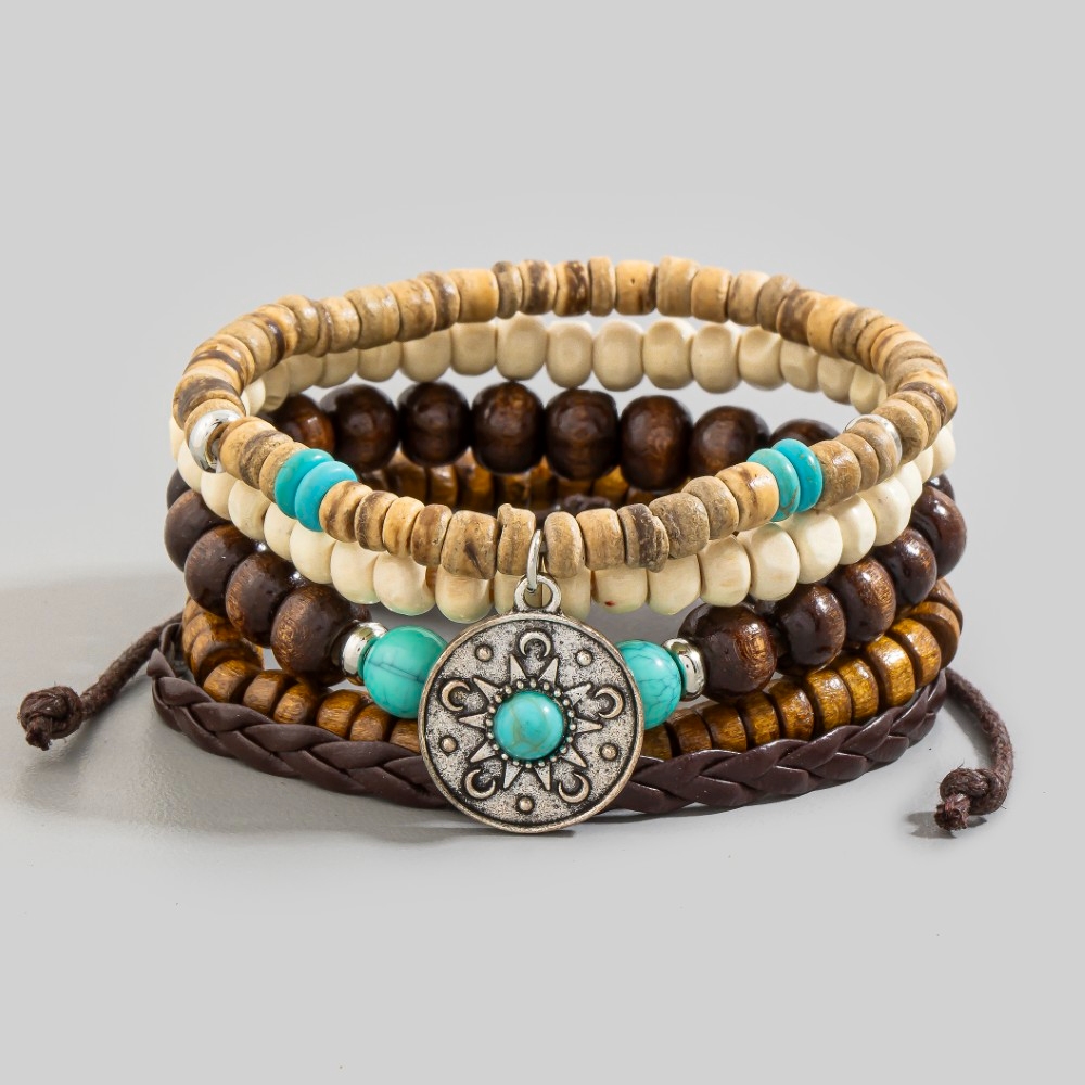 - This stackable bracelet is made with 80% Wooden and 20% Alloy.