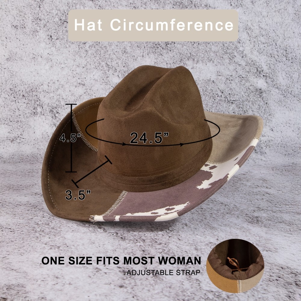 Effortlessly chic and sophisticated, this cowboy hat encompasses a grand western color block design. Add a dash of sophistication to your look with this versatile cowboy hat, a must-have for fashion enthusiasts. This item is sold in packs of 1.