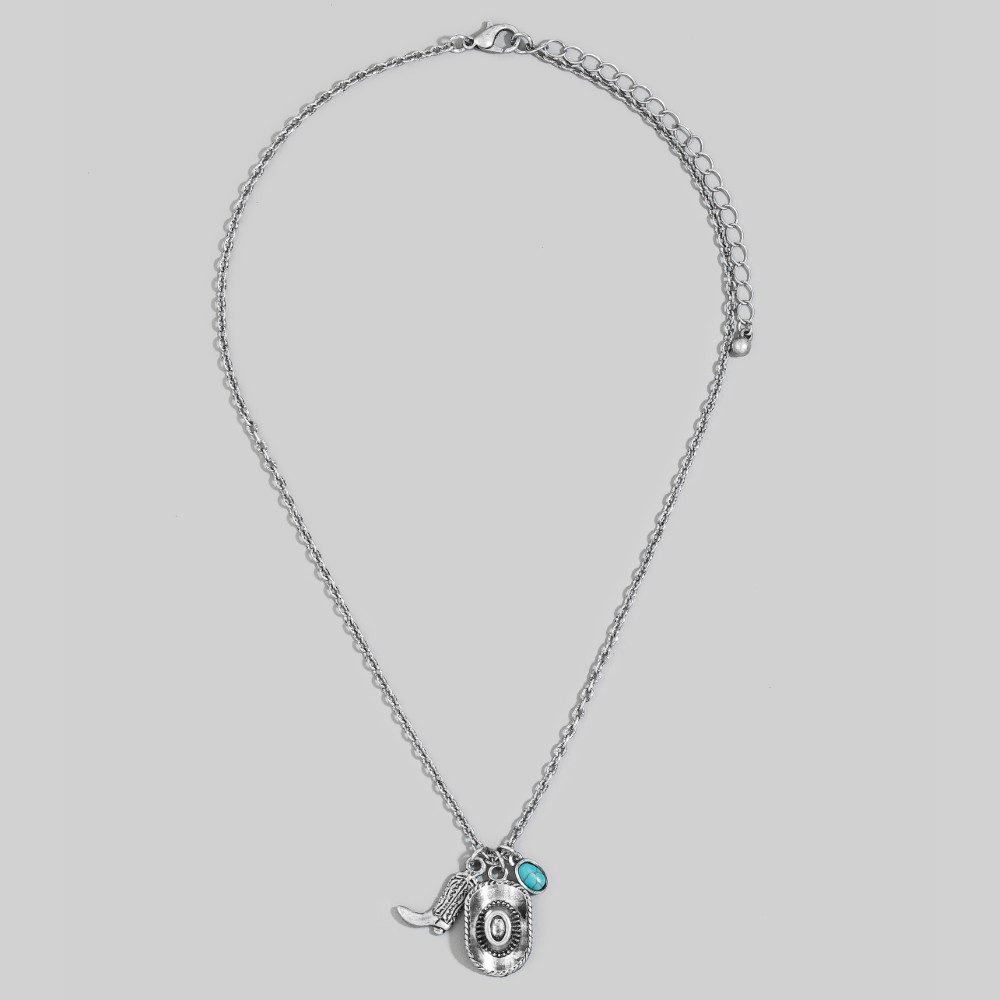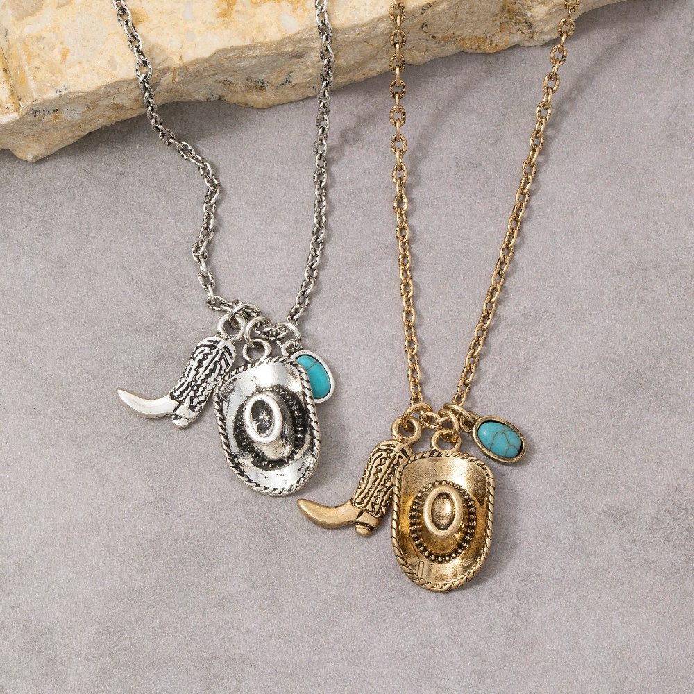 • Guaranteed to add a touch of glamour to any outfit, this necklace shows off a distinctive western cowboy hat & boot charm design. This necklace is ideal for both casual and formal events, adding a touch of sophistication to any outfit. Available in RGTUQ, SXTUQ. This item is sold in packs of 1.