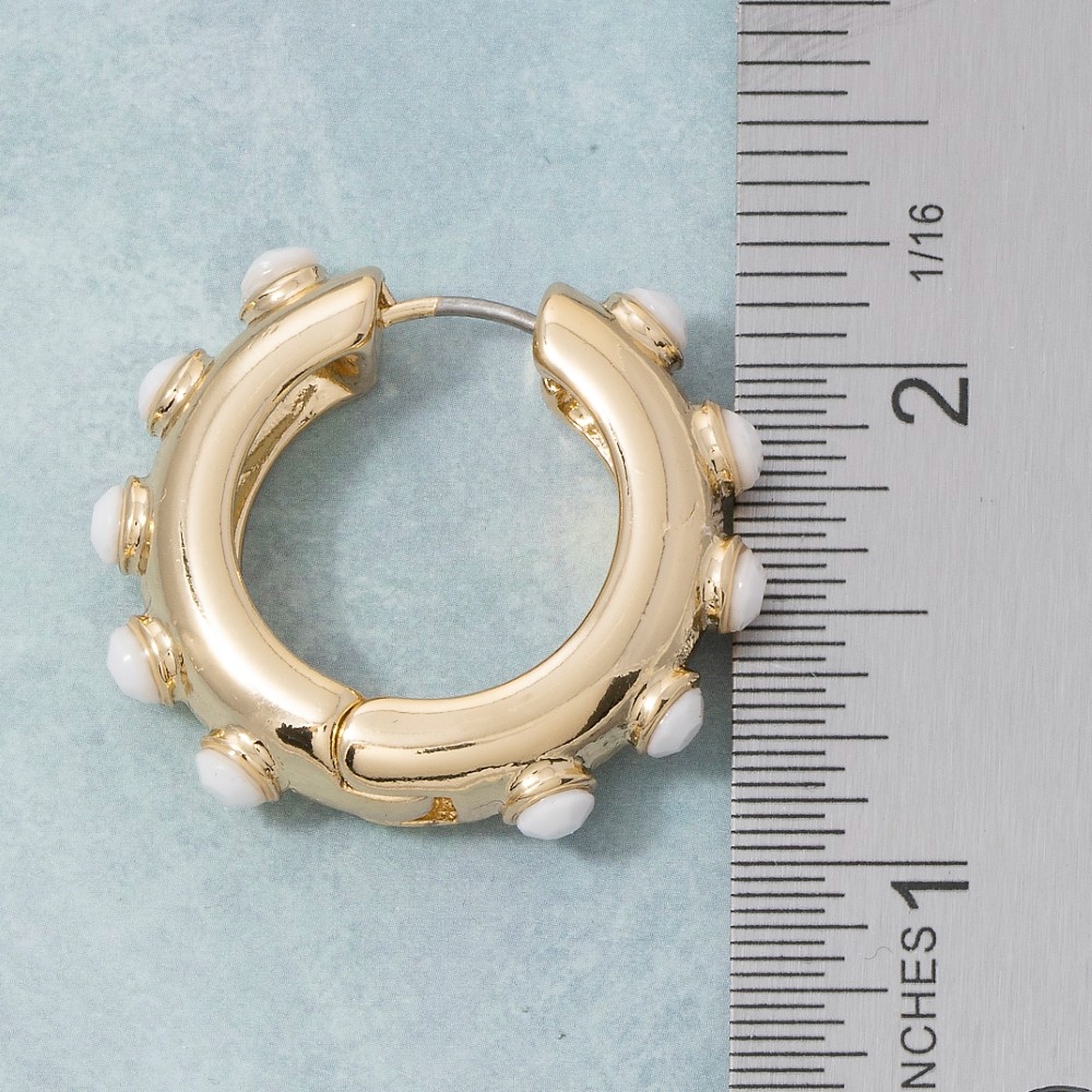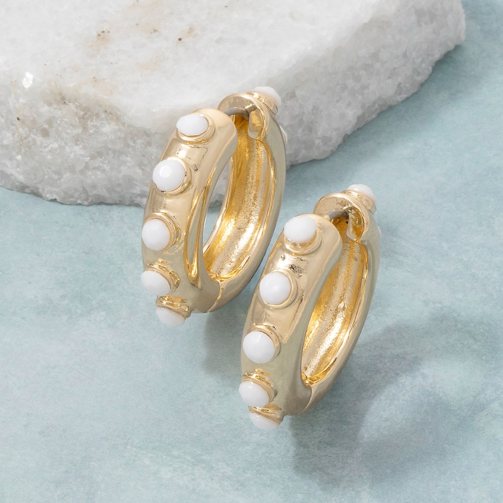 Stay ahead of the fashion curve, this pair of hoop earrings boasts a magnificent white beads accent chunky design. Unlock endless styling possibilities with this versatile pair of hoop earrings, creating a signature look that speaks volumes. Available in GDWHT. This item is sold in packs of 1.
