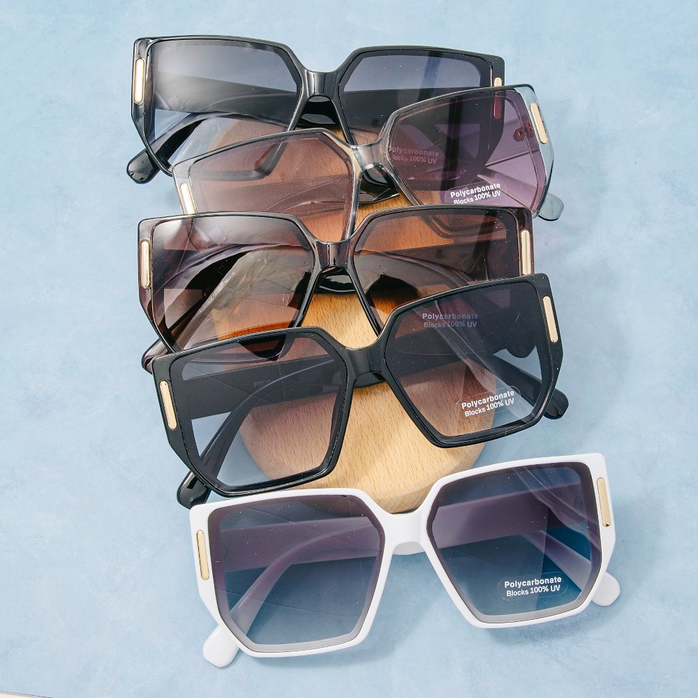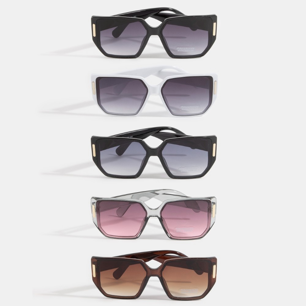 This piece is a true showstopper, this set of sunglasses evokes a captivating wide angular geometric sunglasses with gold bar temple design. Unleash the power of style with this versatile set of sunglasses, perfect for enhancing the charm of your wardrobe. Available in ASSORTED. This item is sold in packs of 12.