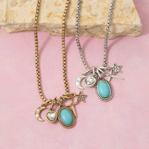 Western Turquoise & Celestial Multi-Charm Box Chain Necklace