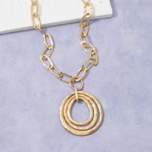 Chunky Oval Link Hammered Multi-Ring Pendant Necklace
