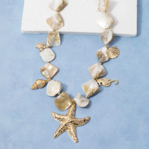 Gold Starfish & Coastal Charms Shell Stone Necklace