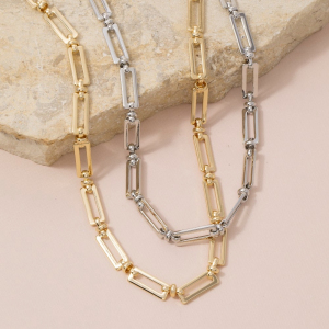 Chunky Rectangular Open Link Chain Necklace