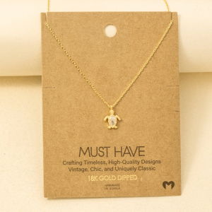 Gold Dipped Cz Turtle Pendant Necklace