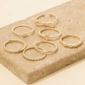 Gold Dipped Cz Moon Star And Butterfly Ring