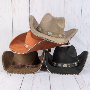 Western Longhorn Strap Studded Trim Cowboy Hat