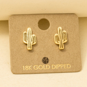 Gold Dipped Dainty Desert Cactus Stud Earrings