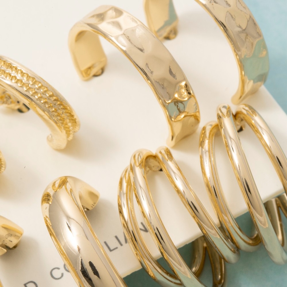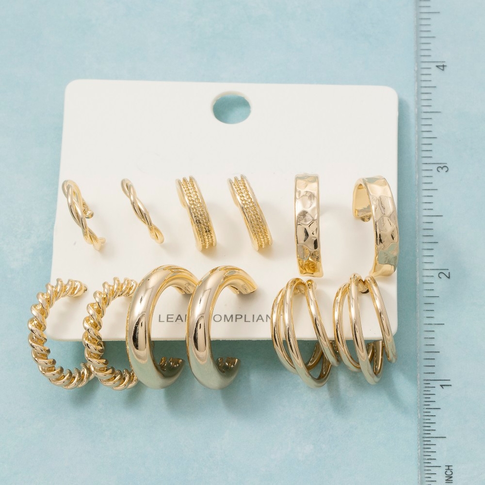 • A timeless piece that will never go out of style, this pair of hoop earrings emanates an elegant assorted 6 pair set design. Embrace fashion flexibility with this versatile pair of hoop earrings, designed to effortlessly enhance the sophistication of any outfit. This item is sold in packs of 12.
