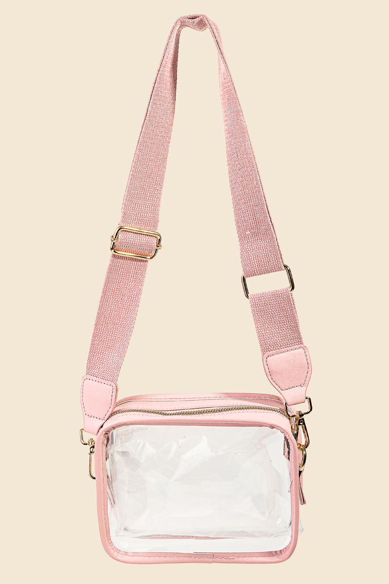 • Effortlessly elevate your outfit, this bag comes with a special clear rectangular cosmetic design. Redefine your fashion identity with this versatile bag, a timeless piece that complements any wardrobe. Available in BK, IV, MI and PK. This item is sold in packs of 12.