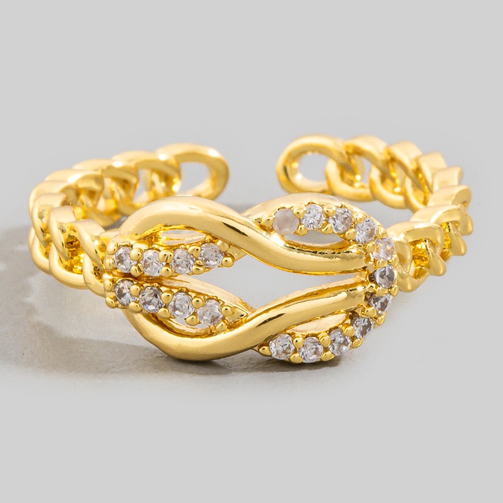 Upgrade your ring game, this ring showcases a breathtaking cz infinity loop chain design. A chic and sophisticated ring that's perfect for dressing up or down. This item is sold in packs of 12.