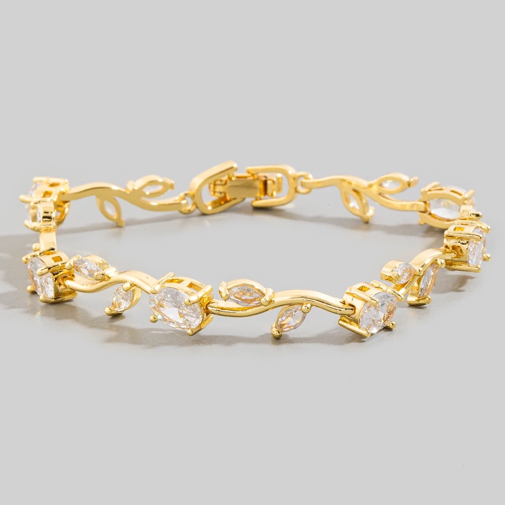 - A must-have addition to any bracelet collection, this bracelet possesses a fine cz leaf vine link design. Infuse a hint of luxury into your daily attire with this versatile bracelet, a must-have for those who appreciate timeless elegance. Available in G, S. This item is sold in packs of 12.