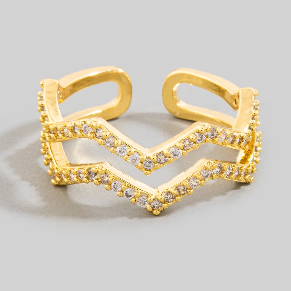 - Effortlessly chic and always on-trend, this ring adds a distinctive cz pave double row zig zag design. Achieve a perfect balance of style and sophistication with this versatile ring, the ultimate choice for the fashion-savvy individual. This item is sold in packs of 12.
