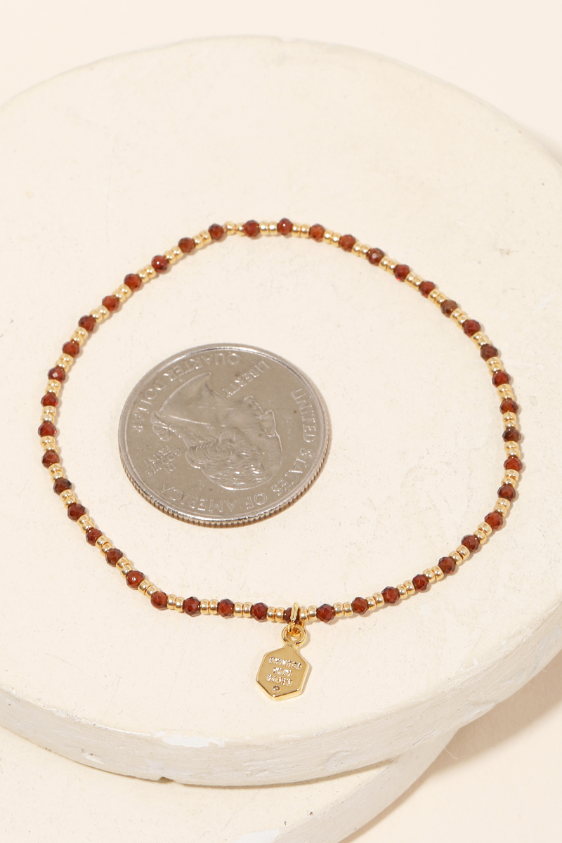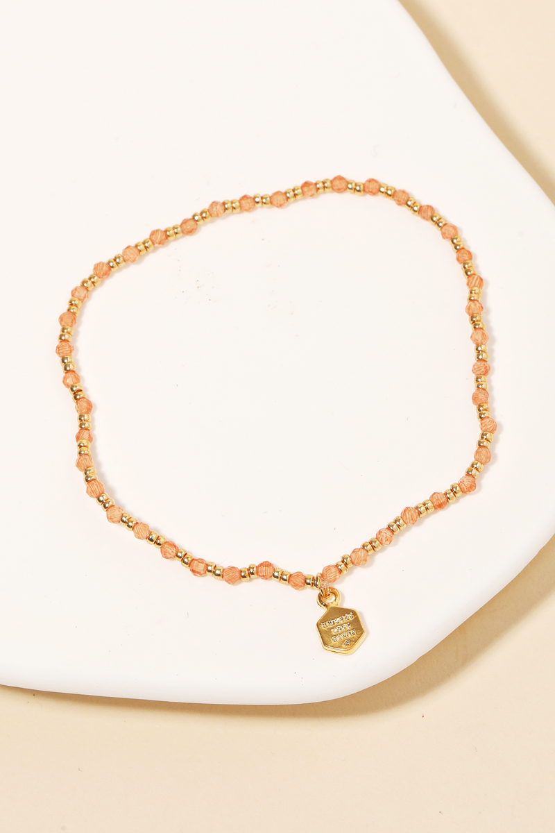 - This piece is designed to be both stylish and functional, this bracelet reveals an intricate dainty bead hexagon charm design. This item is the perfect way to add some texture and interest to any outfit. Available in MI, WH, BR and PE. This item is sold in packs of 12.