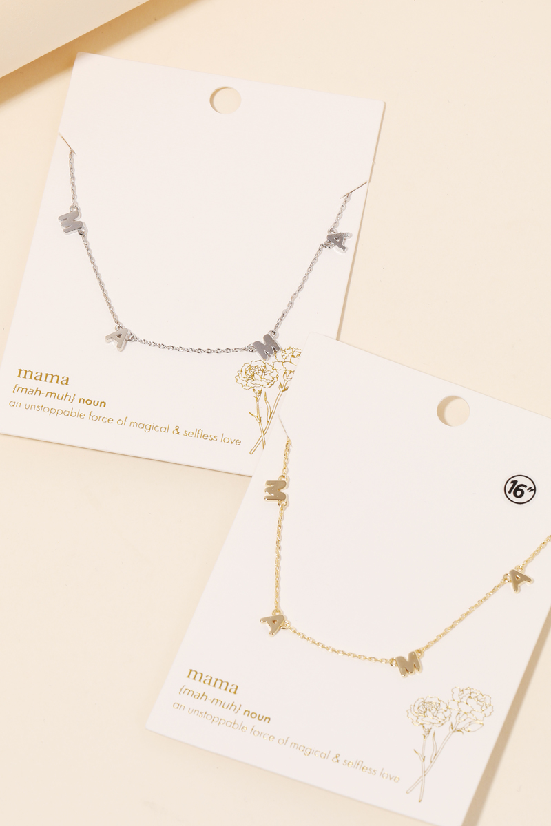 • The perfect way to add some sparkle to your outfit, this necklace introduces an exceptional dainty mama print charm design. A versatile necklace that's perfect for any occasion, adding a touch of elegance and style to any outfit. Available in G and S. This item is sold in packs of 12.