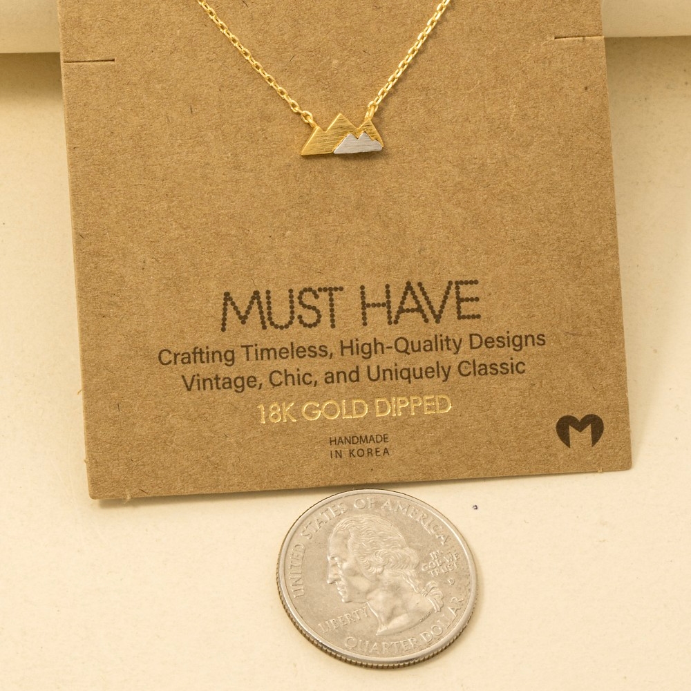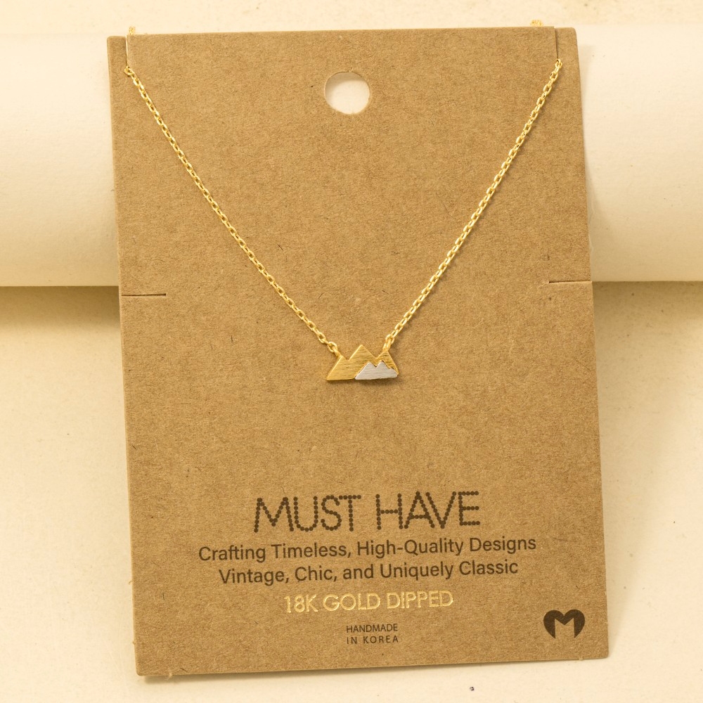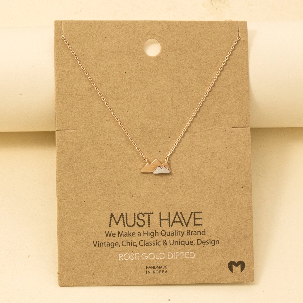 A must-have for any fashion-forward individual, this trending necklace shows off a distinctive dainty mini mountain pendant necklace design. Elevate your personal style effortlessly with this versatile trending necklace, an essential component for a refined wardrobe. Available in GD, SL and RG. This item is sold in packs of 12.