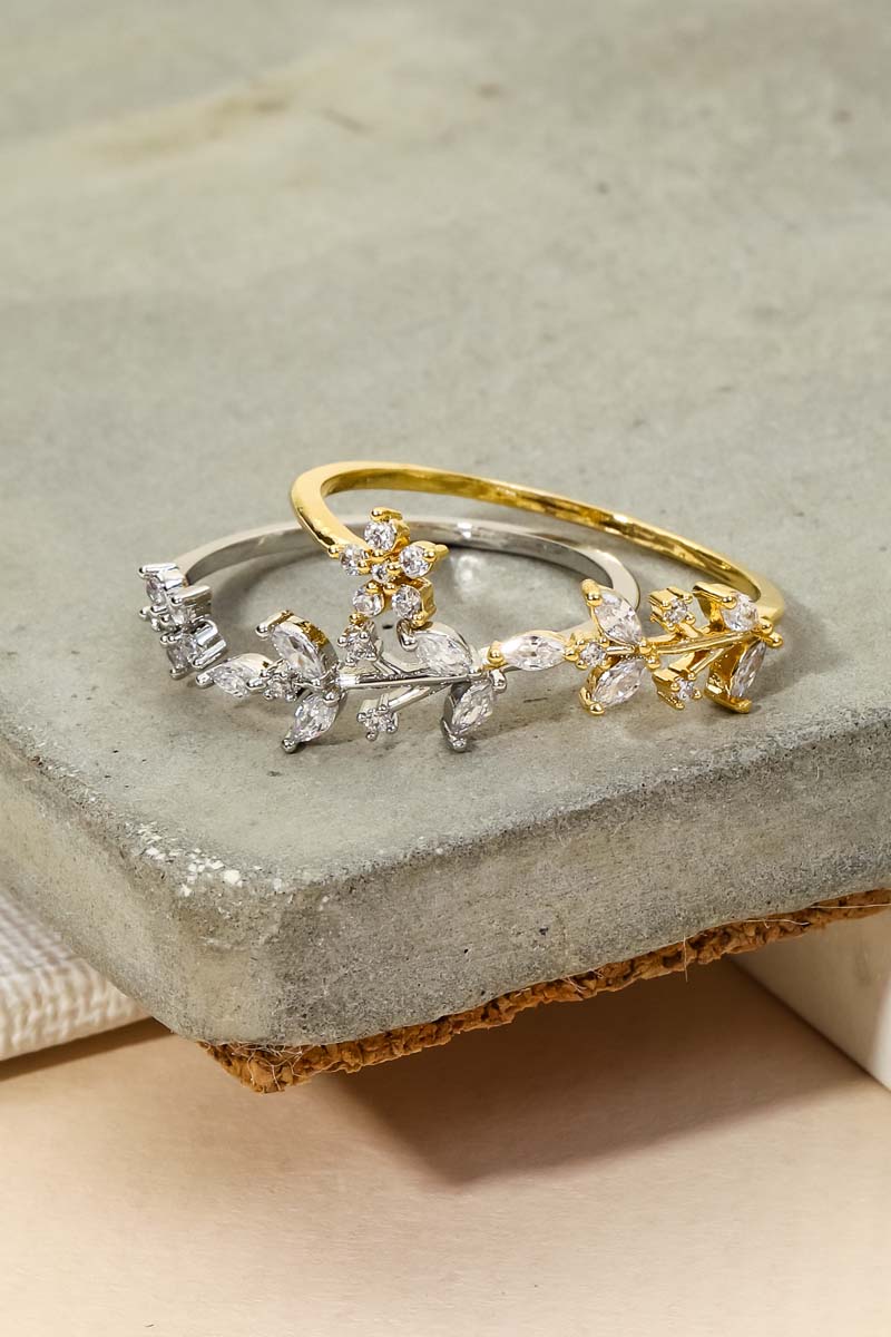 Gold Dipped Cz Flower Leaf Open Ring