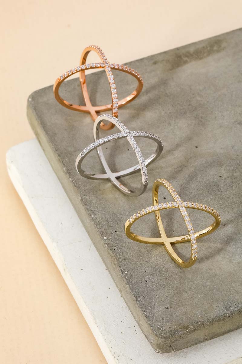 - Effortlessly elevate your style, this ring incorporates a flawless delicate rhinestone x design. Perfect for adding a pop of color or texture to any outfit, this ring is a must-have. Available in G, R, S. This item is sold in packs of 12.