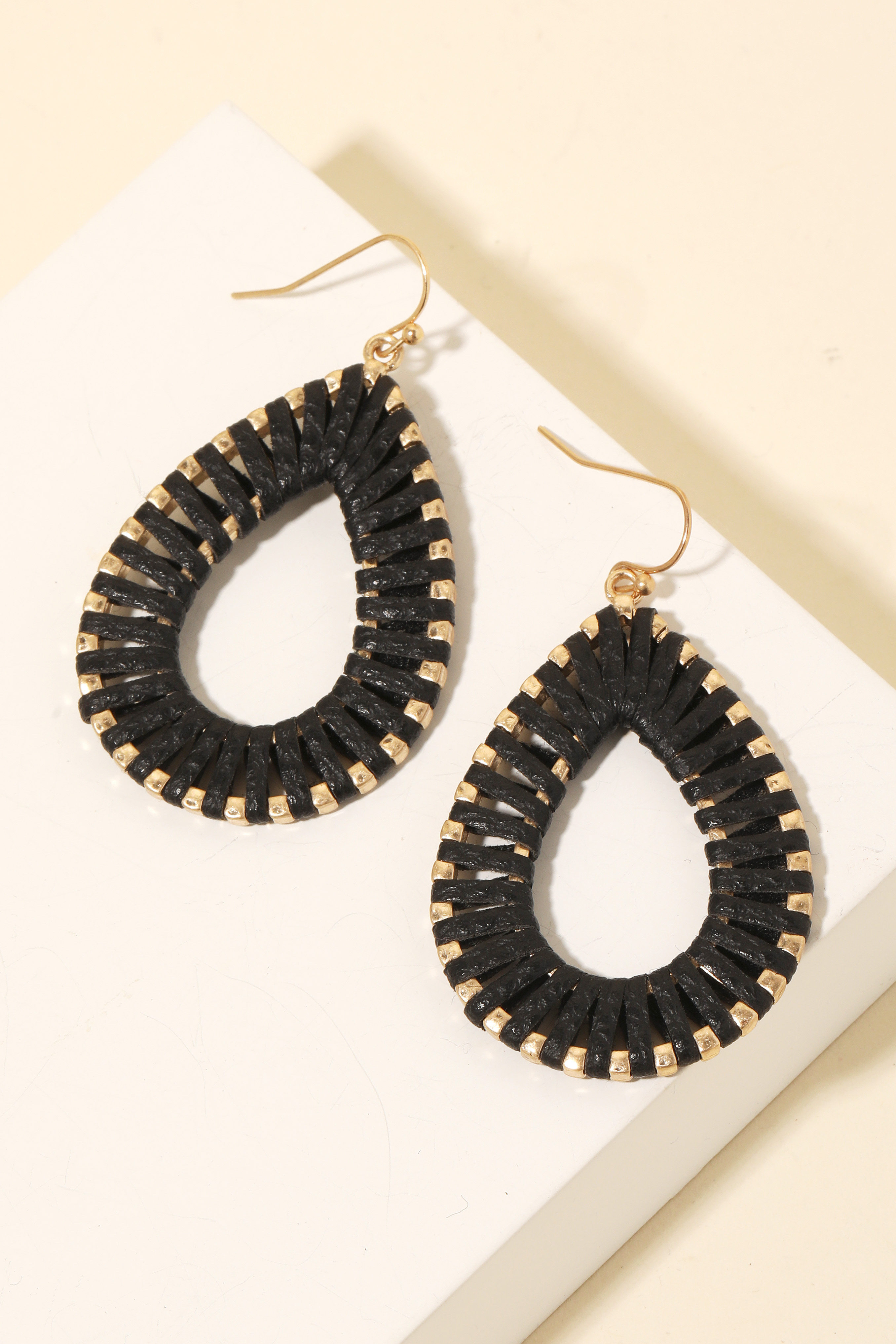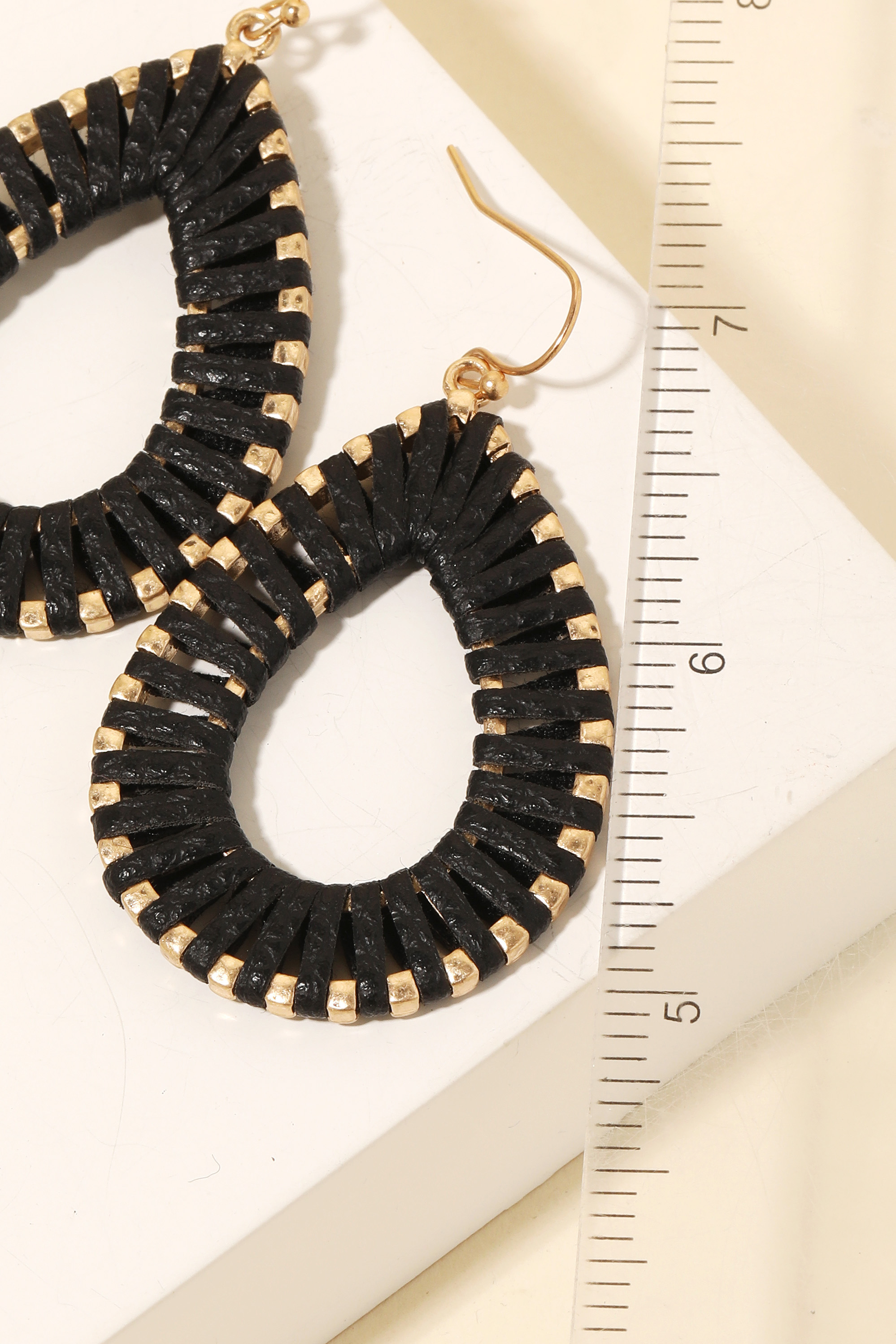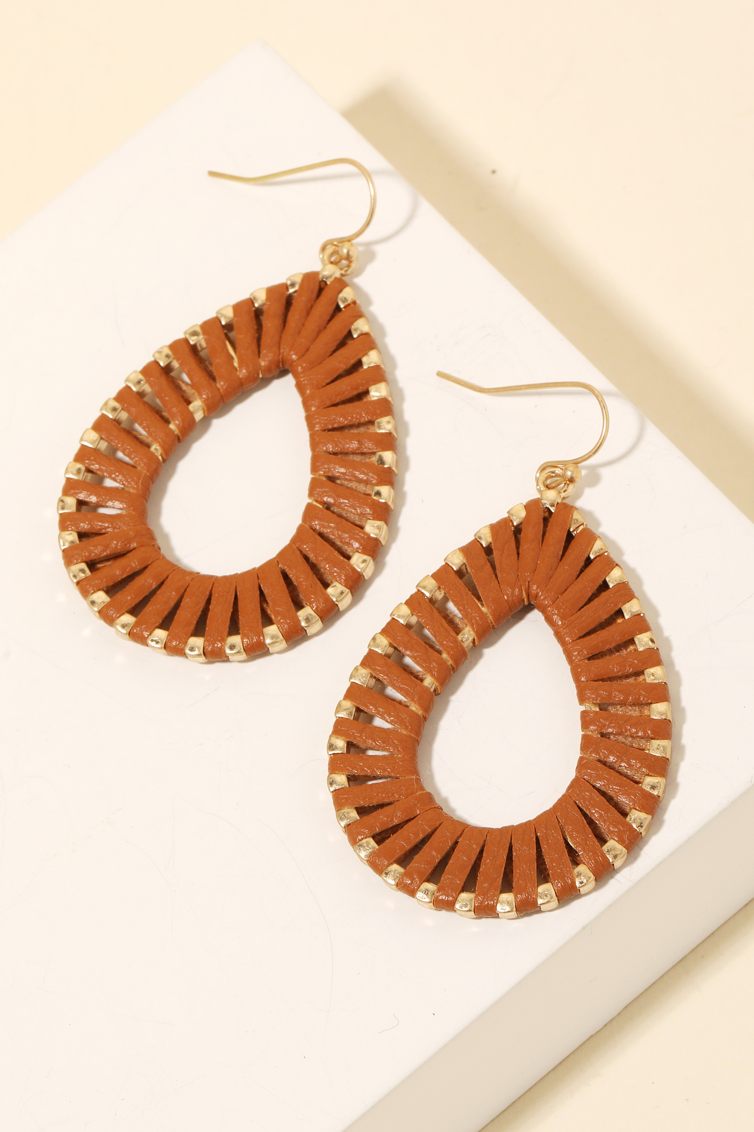 - Chic, sophisticated, and always in style, this pair of dangle earrings features a distinct faux leather wrap tear design. Infuse elegance into your daily wardrobe with the versatile charm of this must-have pair of dangle earrings. This item is sold in packs of 12.