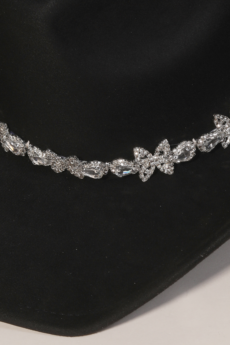 The perfect way to add some sparkle to your outfit, this cowboy hat brings a one-of-a-kind floral rhinestone strap design. Perfect for adding a pop of color or texture to any outfit, this cowboy hat is a must-have. Available in BK. This item is sold in packs of 12.