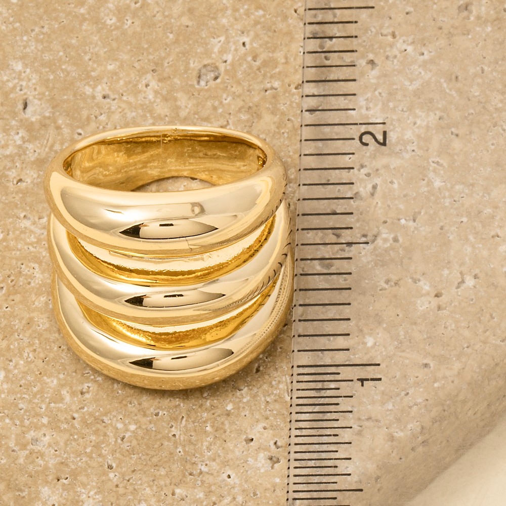 • This piece is both timeless and contemporary, this ring incorporates a remarkable gold dipped chunky triple layered band design. Infuse a hint of luxury into your daily attire with this versatile ring, a must-have for those who appreciate timeless elegance. Available in G7 and X7. This item is sold in packs of 12.