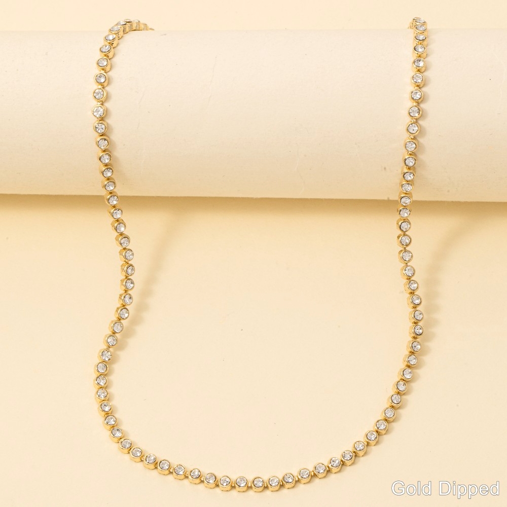 - This piece is designed to make a statement, this chain necklace reveals an intricate gold dipped cubic zirconia tennis design. Master the art of accessorizing with this versatile chain necklace, a key element for achieving a chic and polished look. Available in 2SILVER and GOLD. This item is sold in packs of 12.
