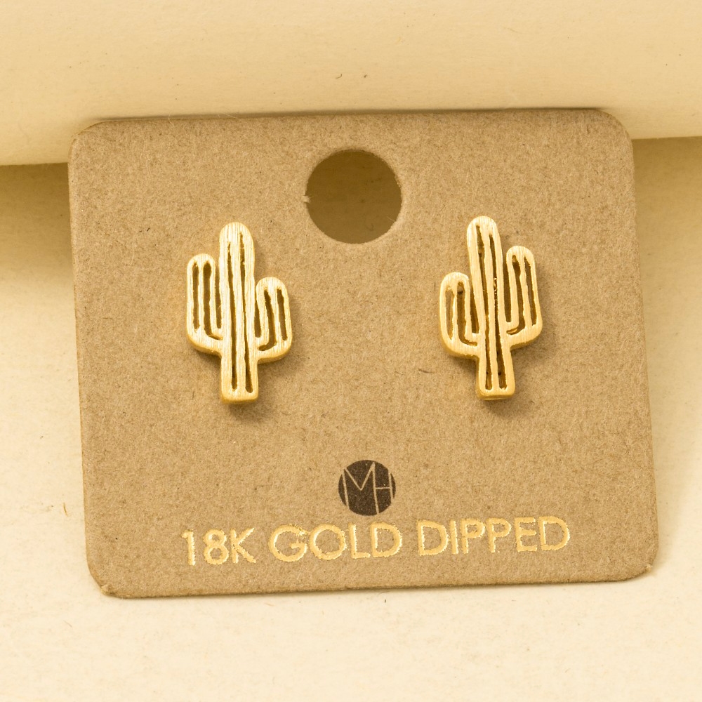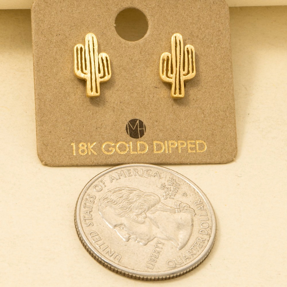• A modern classic, this trending pair of earrings introduces an exceptional gold dipped dainty desert cactus stud earrings design. Redefine your wardrobe with this versatile trending pair of earrings, a timeless addition that brings an air of sophistication to any look. Available in G, S. This item is sold in packs of 12.