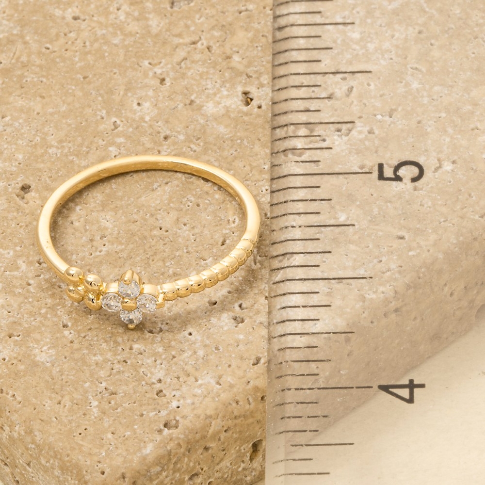 • A bold and daring choice, perfect for those who want to stand out from the crowd, this ring evokes a captivating gold dipped floral cubic zirconia design. Infuse your ensemble with a touch of sophistication using this versatile ring, a game-changer in the world of fashion. Available in G, S. This item is sold in packs of 12.
