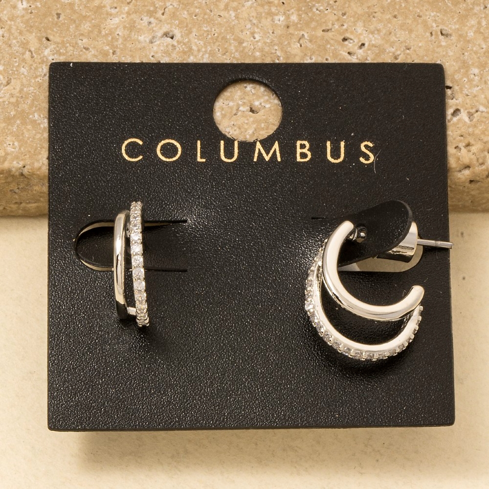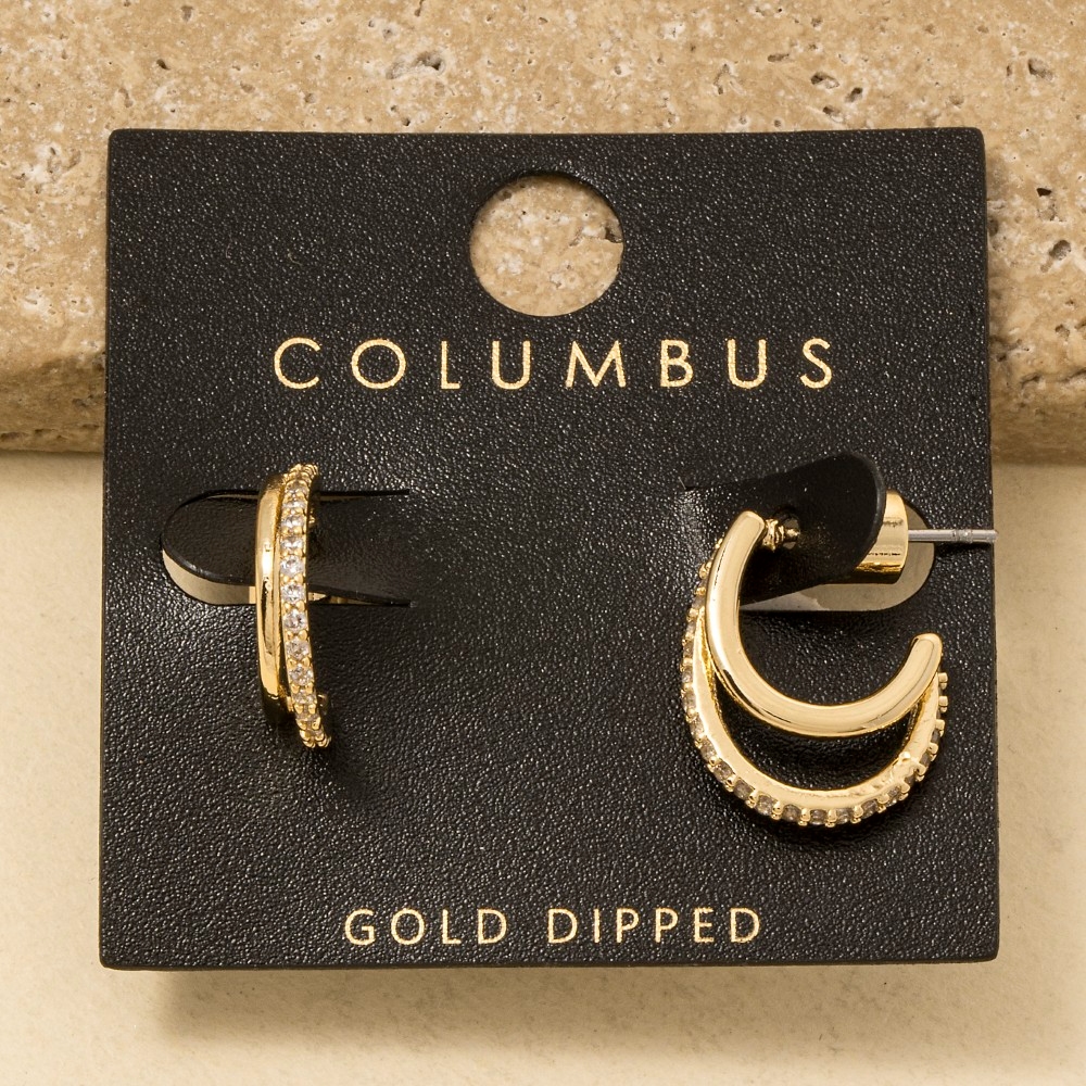 Gold Dipped Cz Triple Stud Bar Stud Earrings
