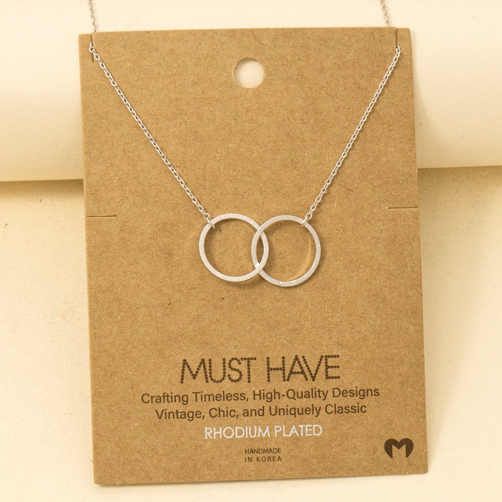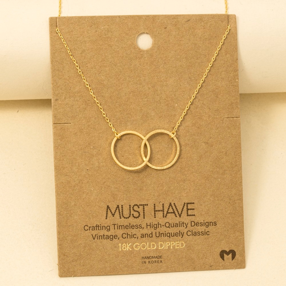• The epitome of sophistication and style, this trending necklace displays a unique metallic dual circle pendant necklace design. Perfect for adding some texture and dimension to any outfit, this trending necklace is a must-have. Available in G. This item is sold in packs of 12.