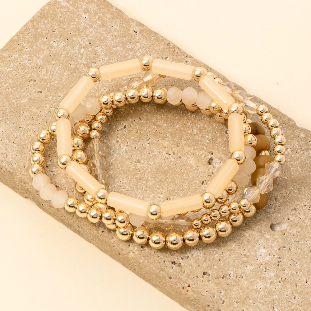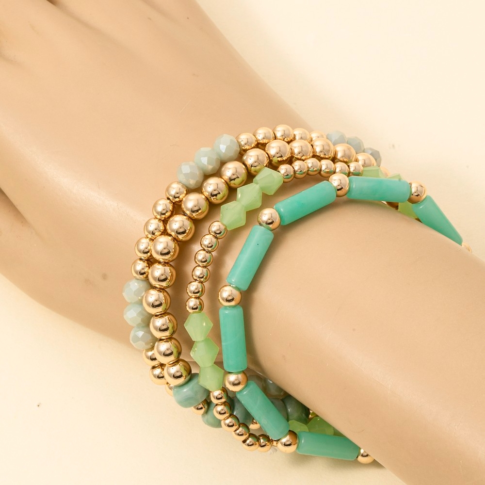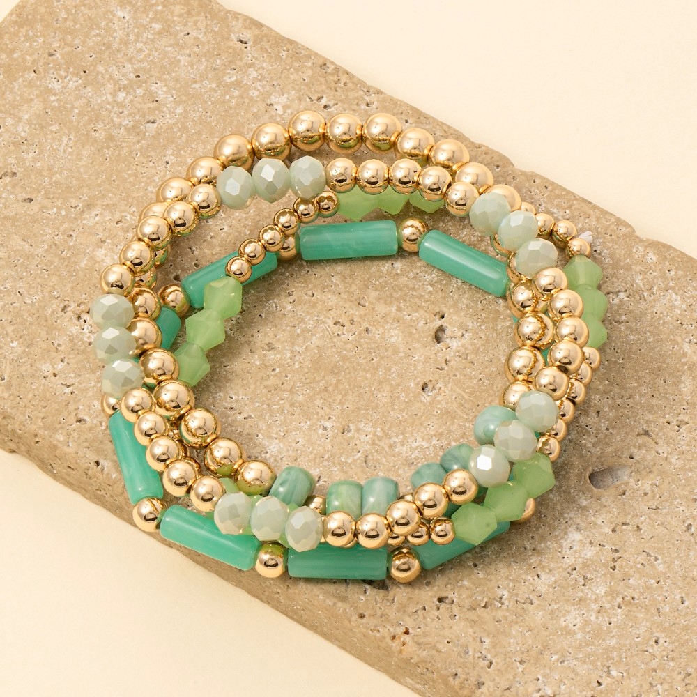 A stunning addition to any jewelry collection, this bracelet flaunts a luxurious metallic and tube mixed beaded set design. Unlock endless styling possibilities with this versatile bracelet, creating a signature look that speaks volumes. Available in GDNAT and GDMINT. This item is sold in packs of 12.