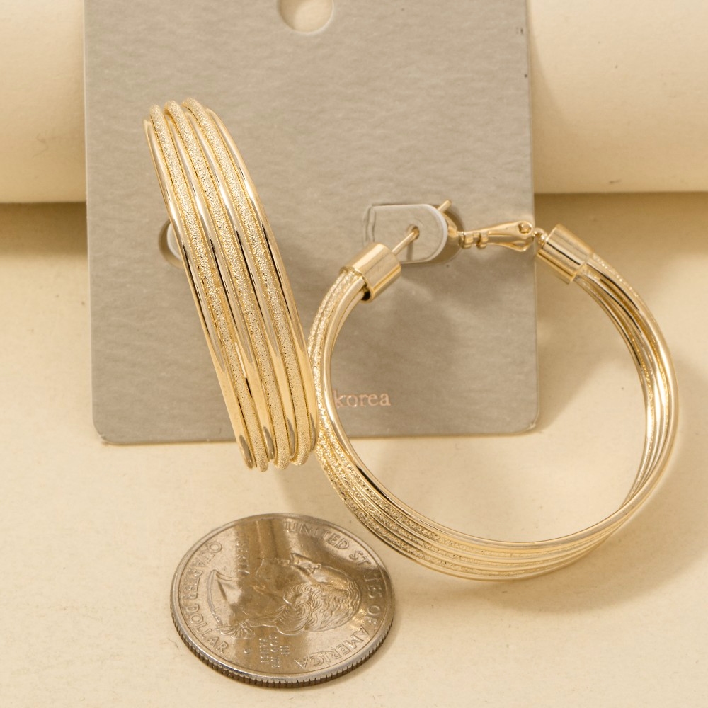 The perfect way to add some edge to your look, this pair of hoop earrings contains a special multi row design. A perfect addition to your wardrobe that effortlessly enhances your style. This item is sold in packs of 12.