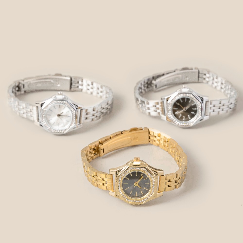 Make a statement, this accessory highlights a special pave trim octagonal watch design. Elevate your outfit with this stylish accessory that's perfect for any occasion. Available in GBK, GWH, SBK and SWH. This item is sold in packs of 12.