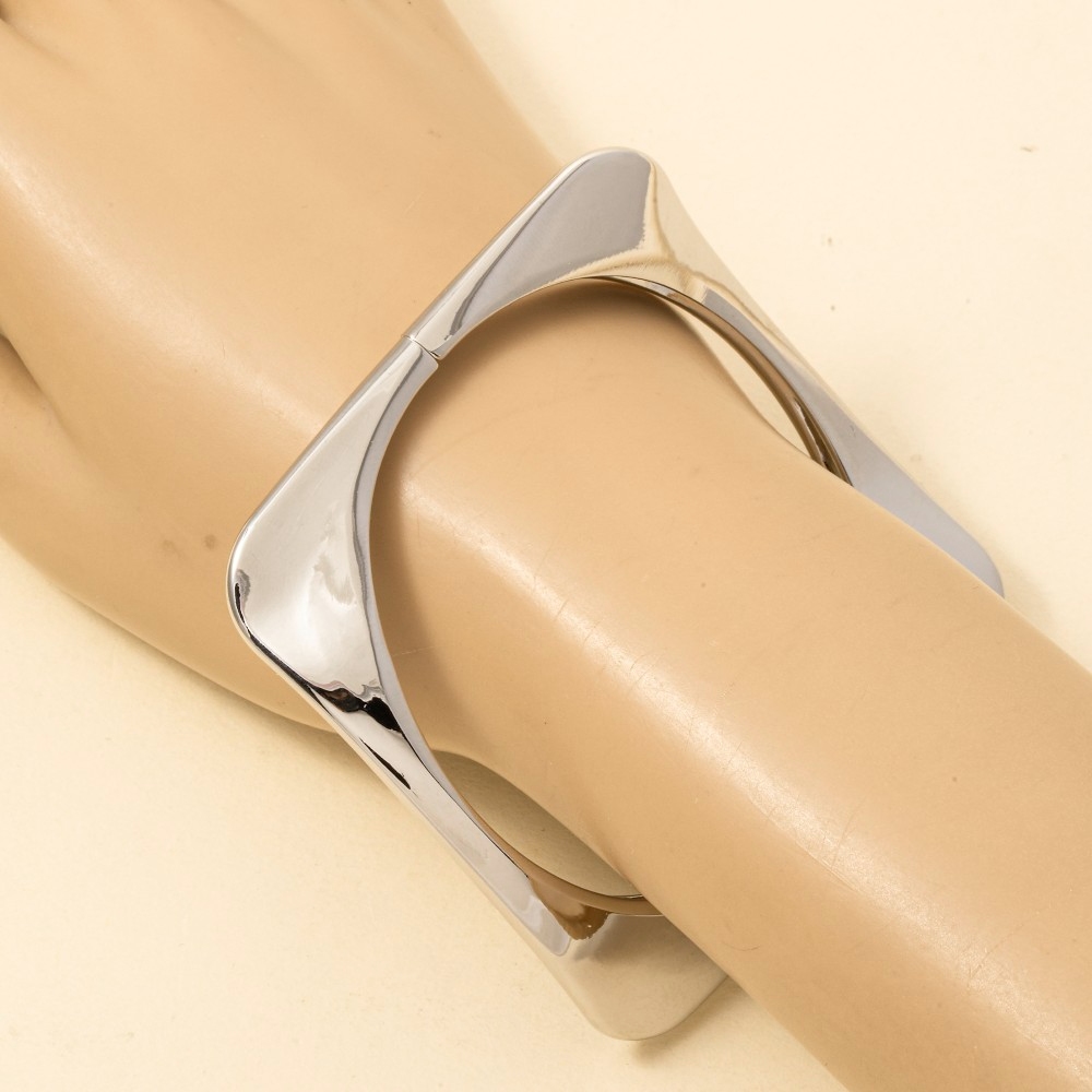 • This piece is both timeless and contemporary, this bracelet evokes a captivating silver metallic square hinge design. Unleash the potential of your wardrobe with this versatile bracelet, ensuring a touch of elegance in every ensemble. This item is sold in packs of 12.