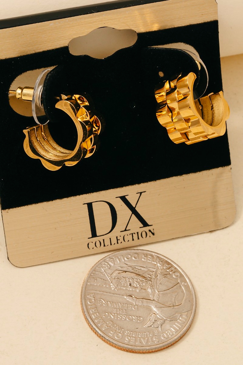 • Effortlessly stylish and always on-trend, this pair of hoop earrings flaunts a luxurious stainless steel layered design. Discover a new level of fashion versatility as this pair of hoop earrings effortlessly elevates the allure of your attire. Available in G, K and X. This item is sold in packs of 12.
