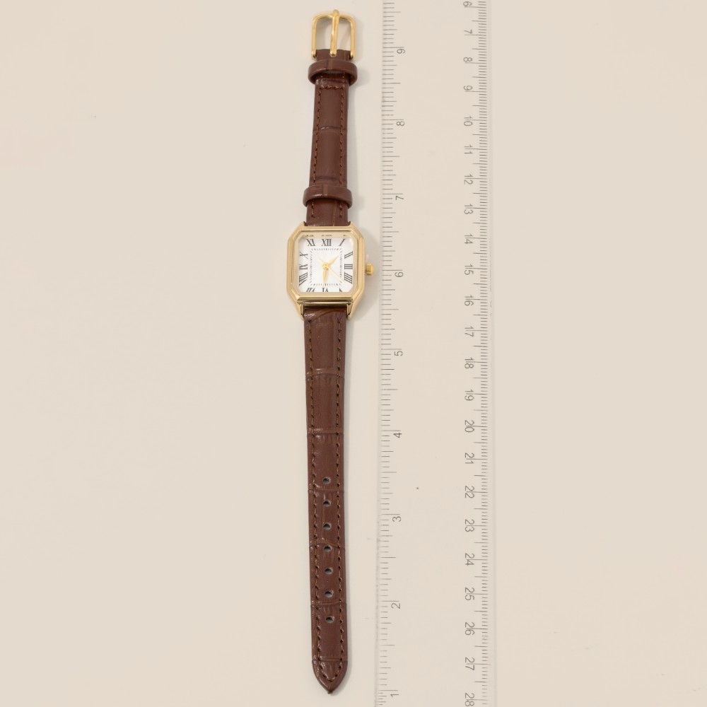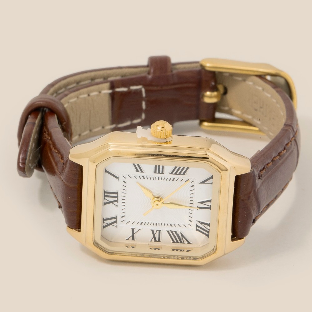 The perfect way to add some sparkle to your outfit, this accessory reveals an intricate thin leather strap vintage square watch design. A must-have accessory that adds a unique flair to any look. Available in BKGW, BRGW and BKSB. This item is sold in packs of 12.