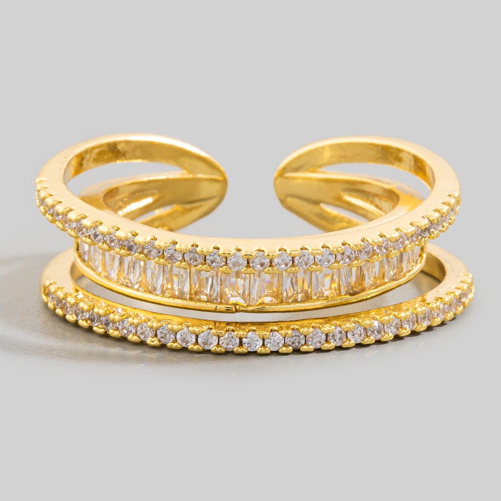 Chic, sophisticated, and always in style, this ring incorporates a flawless triple row cubic zirconia baguette design. Discover the magic of accessorizing with this versatile ring, effortlessly upgrading the style quotient of any outfit. This item is sold in packs of 12.