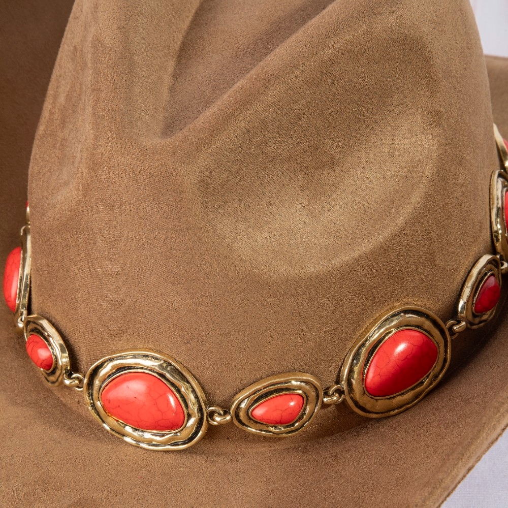 Perfect for any occasion, from casual to formal, this cowboy hat includes a stunning western sculpted concho chain design. Redefine your fashion identity with this versatile cowboy hat, a timeless piece that complements any wardrobe. This item is sold in packs of 12.